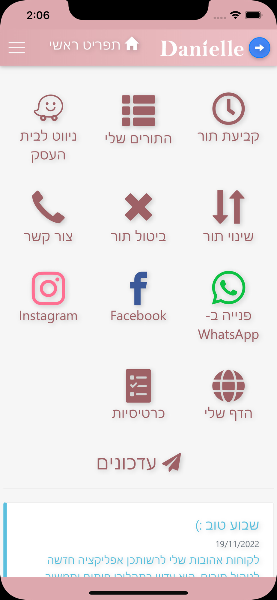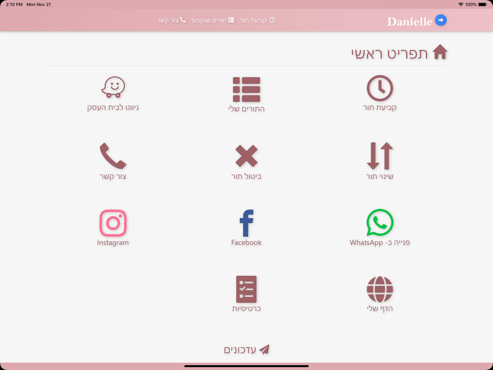 באפליקציה אפשר לקבוע תור, לנווט באמצעות Waze ולפנות אליי באמצעות WhatsApp.