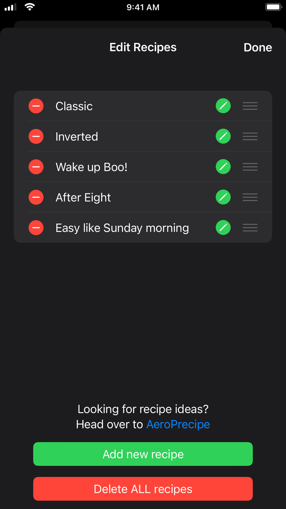 Use gjAero to create and manage your recipes for creating the perfect AeroPress brew every time.