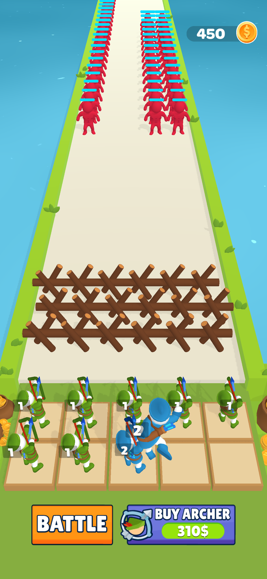 Buy new archers and position them according to the enemy layout. Earn money by defeating enemies. Upgrade your archers by merging them to improve your squad.
