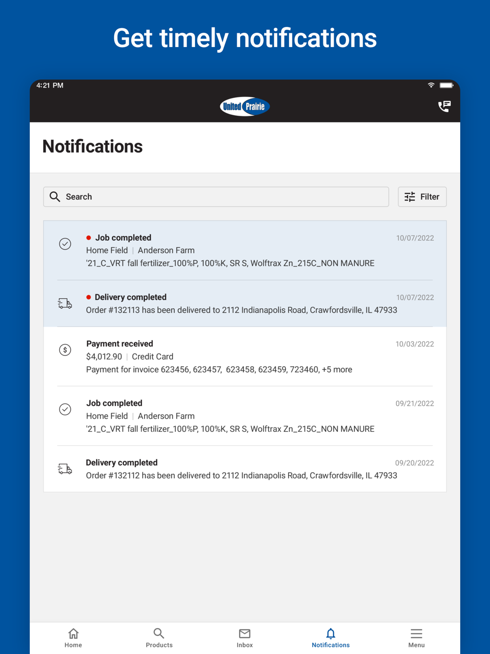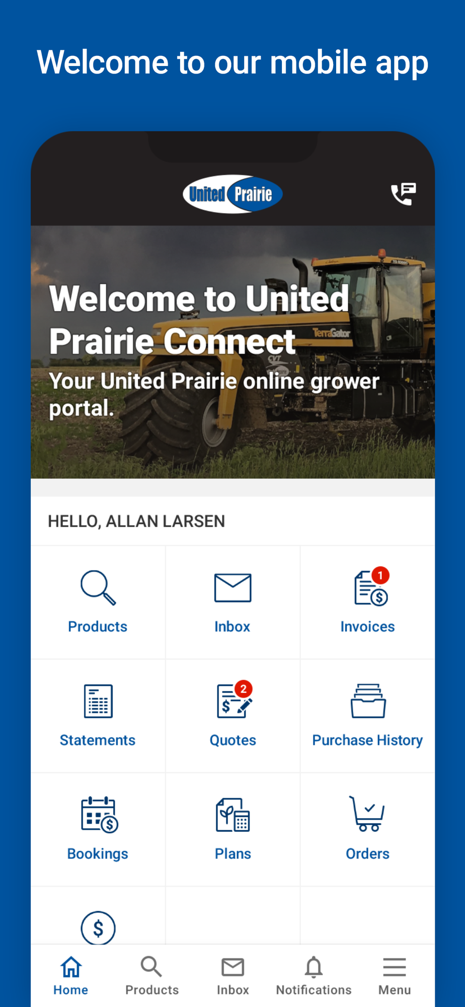 • Easily look up all of your United Prairie account information. Find all of your previous purchases or view and pay your invoices in a few clicks.