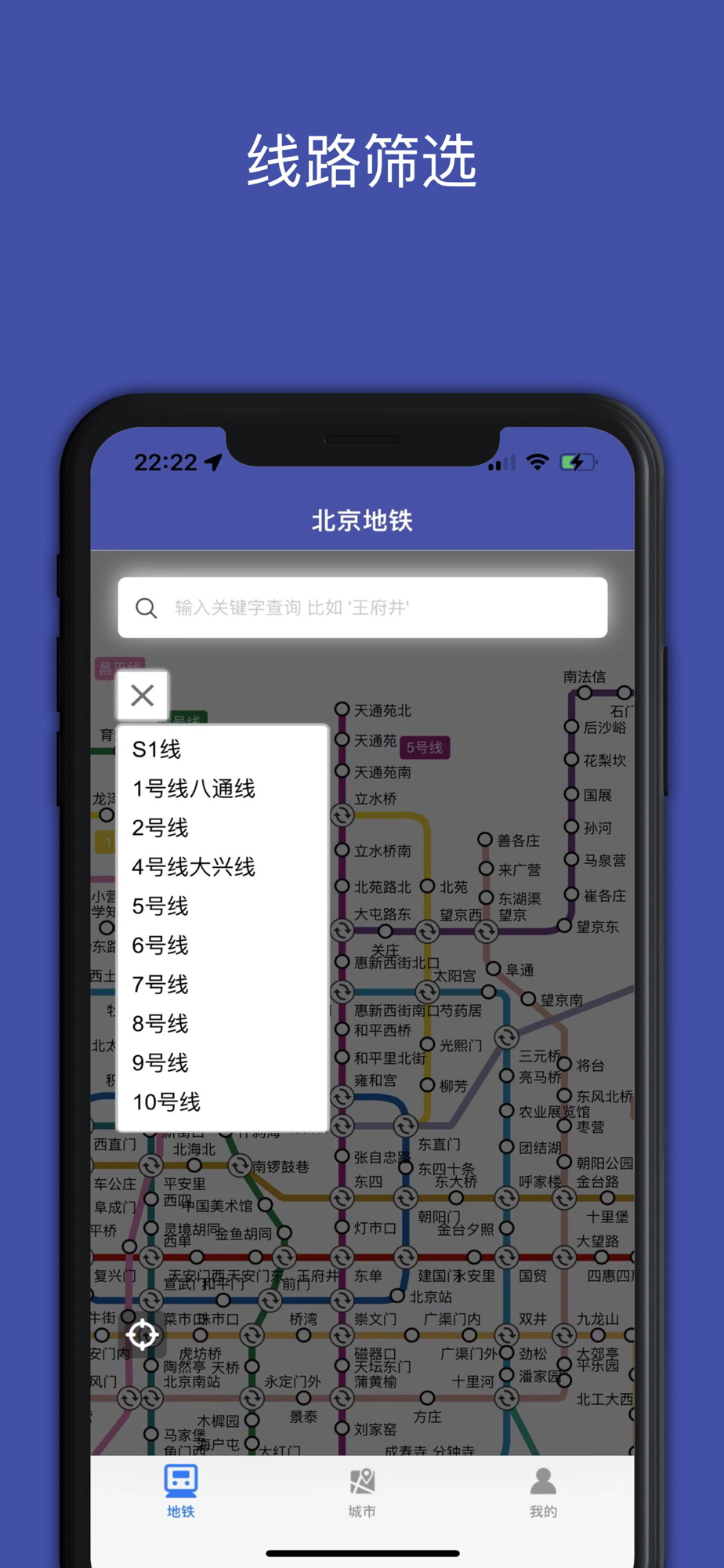 查看全国主要城市的地铁线路图和站点数据,支持设置起点和终点以后计算换乘方案。