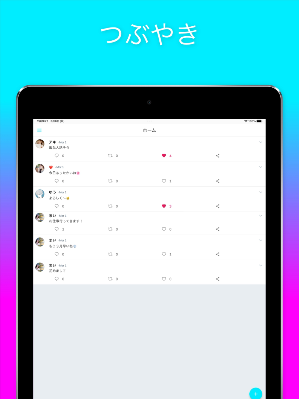 ホーム - 好きなことをつぶやいたり、みんなの投稿にいいねやコメント!画像も上げれるよ