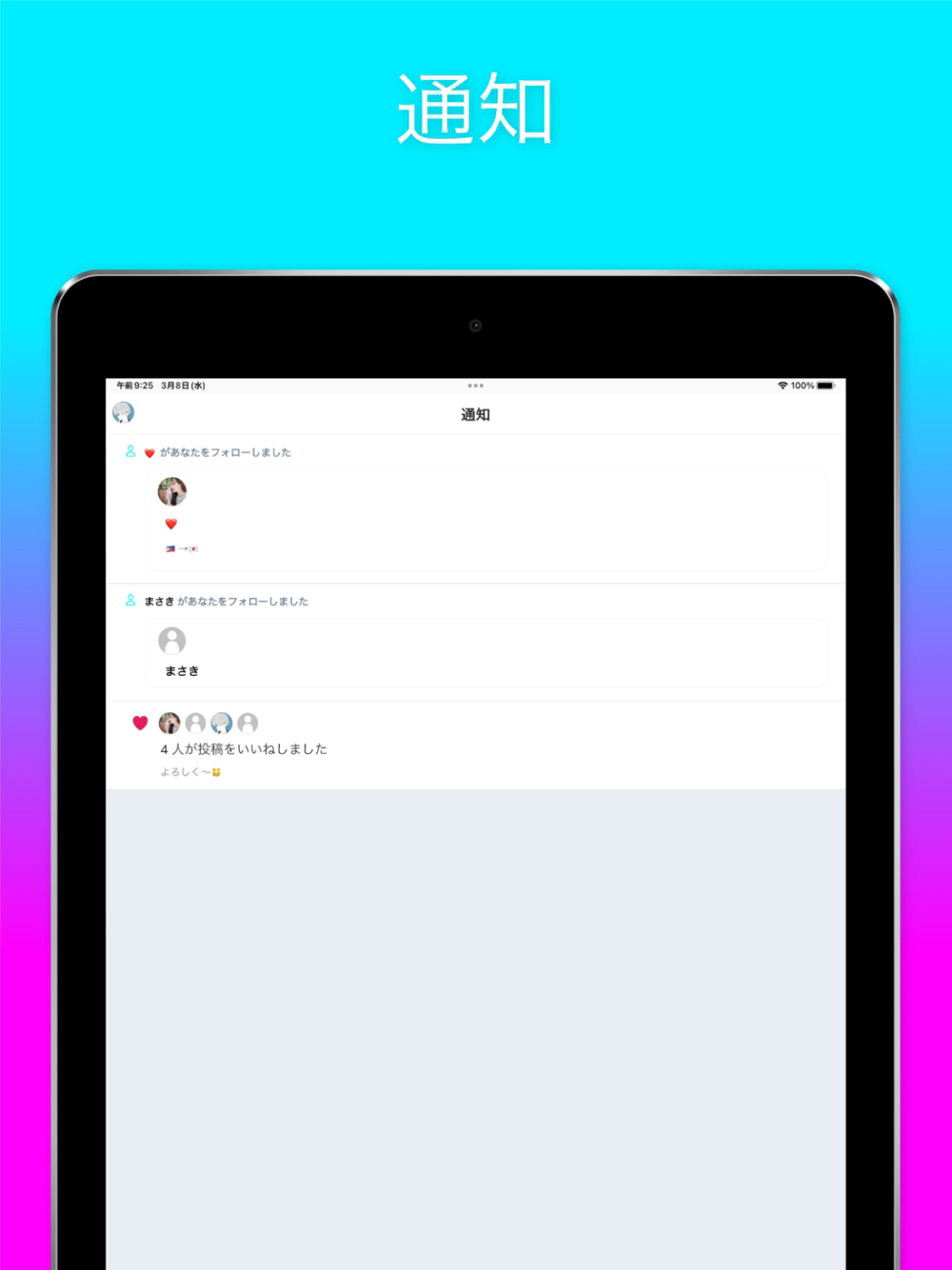 通知 - いいねされたりフォローされたらここに表示されるよ!