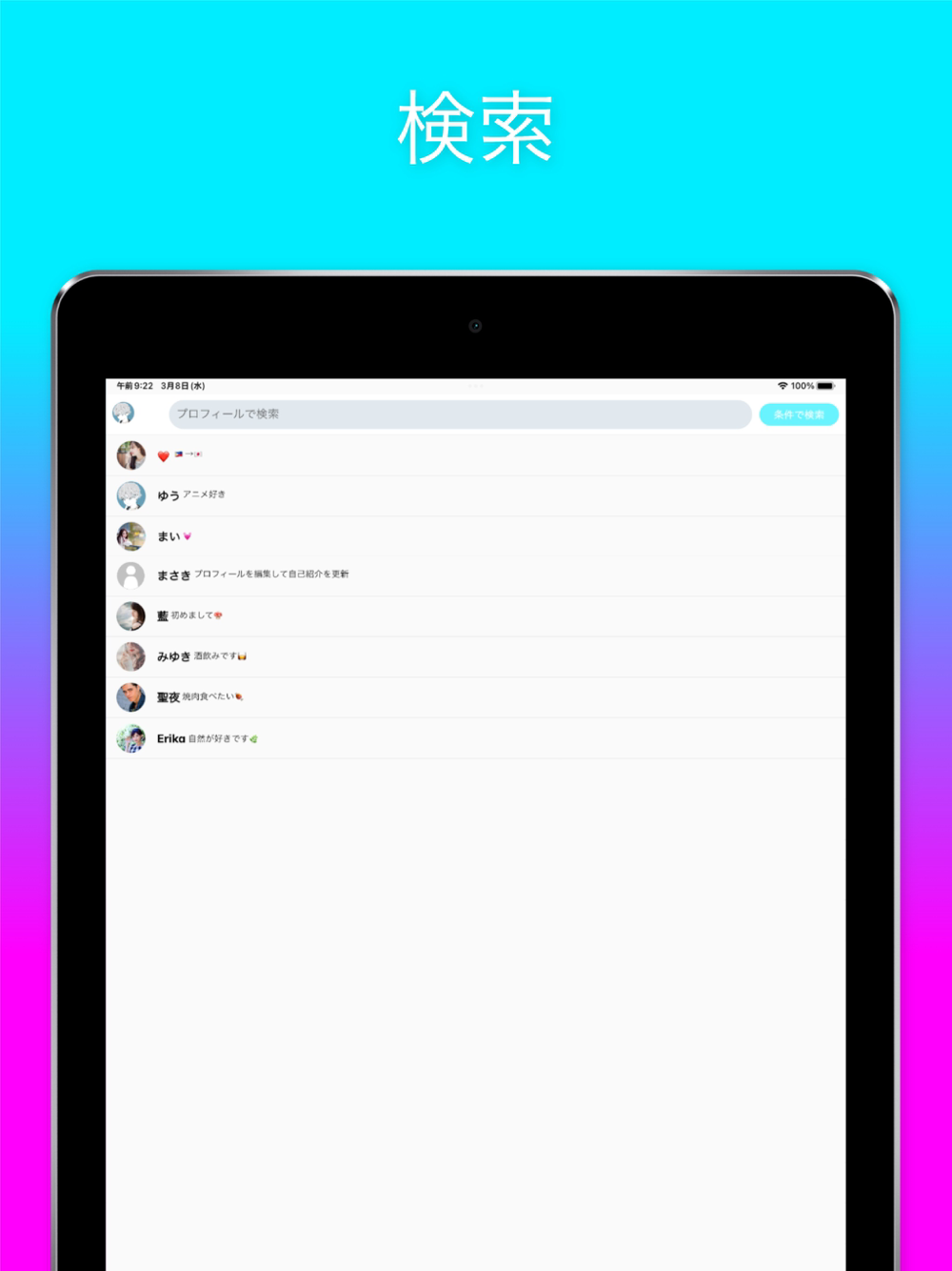 プロフィール検索や条件検索で自分に合いそうな友達を見つけてみよう!