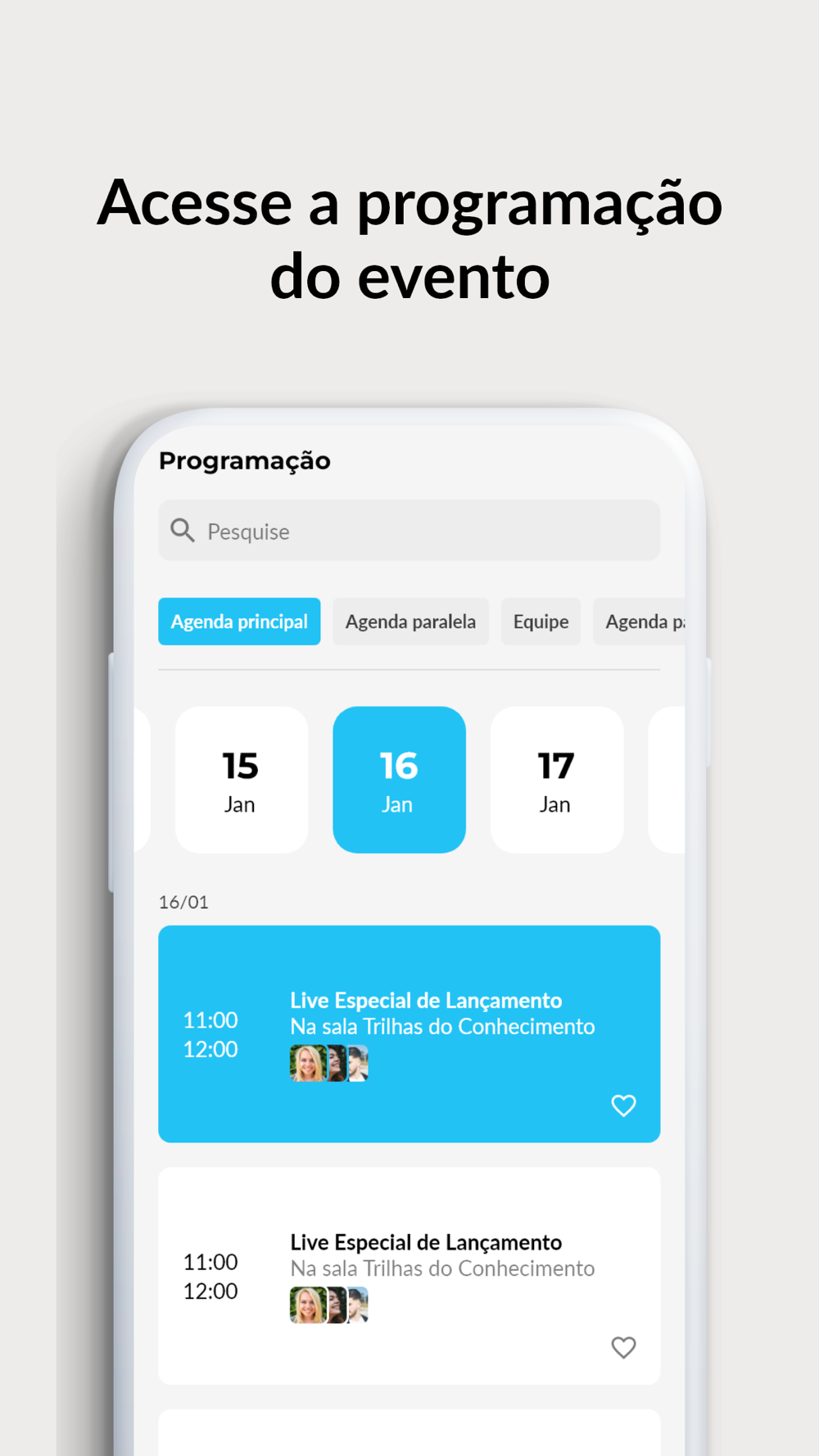 Com o aplicativo da FEICON, você tem acesso a uma rede social exclusiva, pode fazer novos contatos, trocar mensagens com outros participantes, enfim, interagir com a comunidade do evento. Além disso, você pode consultar a programação e avaliar conteúdos. Utilize o APP e aproveite ao máximo os recursos.
