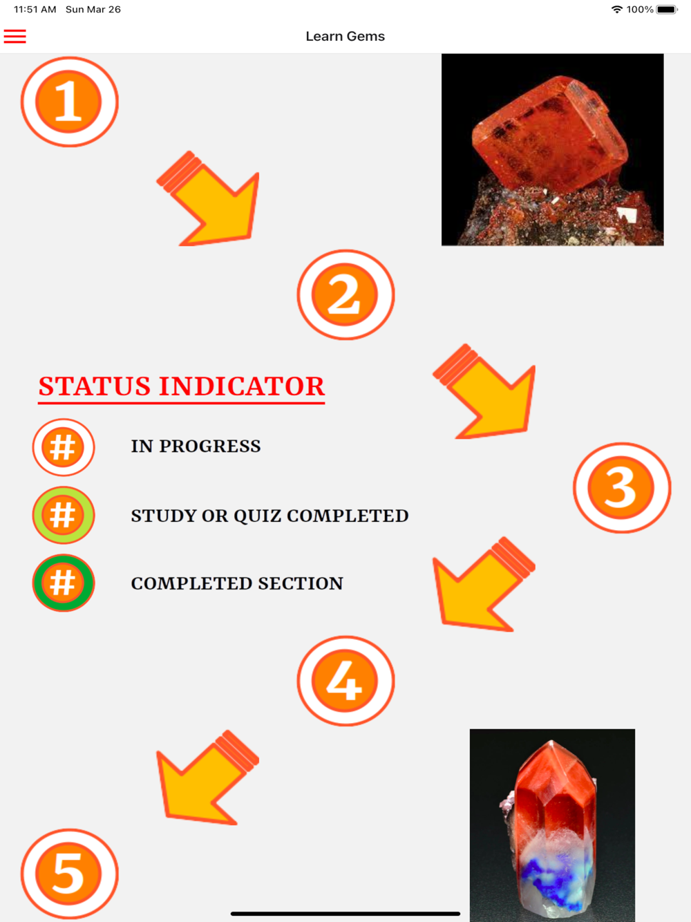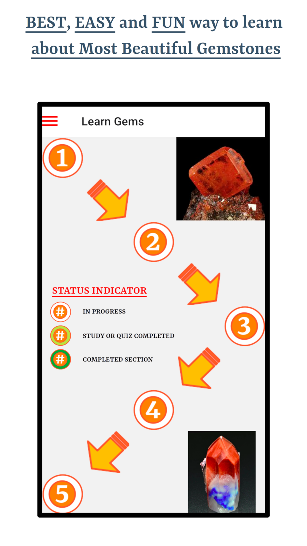 This app is a great resource to memorize Most Beautiful Gemstones. The app is engineered to make users perfect identifying famous gems by studying for a very short amount of time. Audio functionality and bookmarking is available throughout the app on chapter, section, study mode and quiz modes.