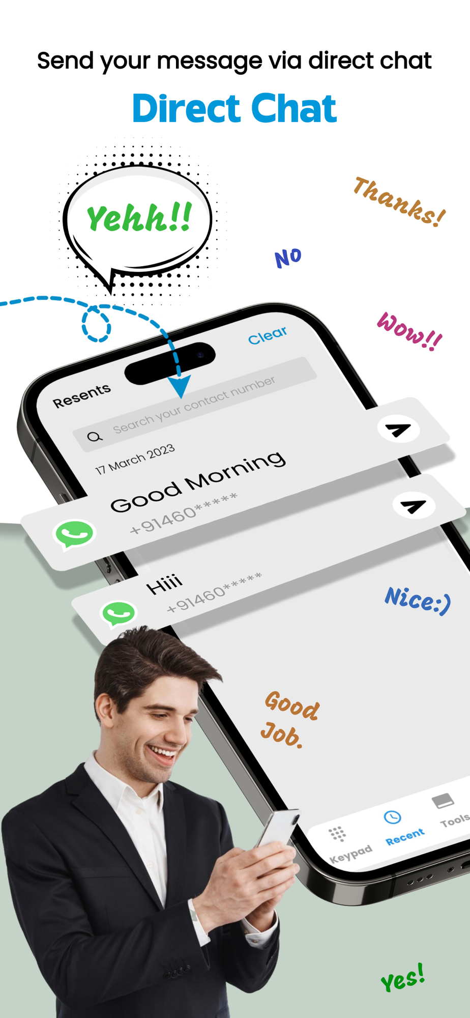 Do you know that now you can send message to anyone withour adding to contacts? Yes, it is possible now with our "Click to Chat". Click to chat also known as "Direct Chat". Also you can create a link that will allow you to start a chat with them.