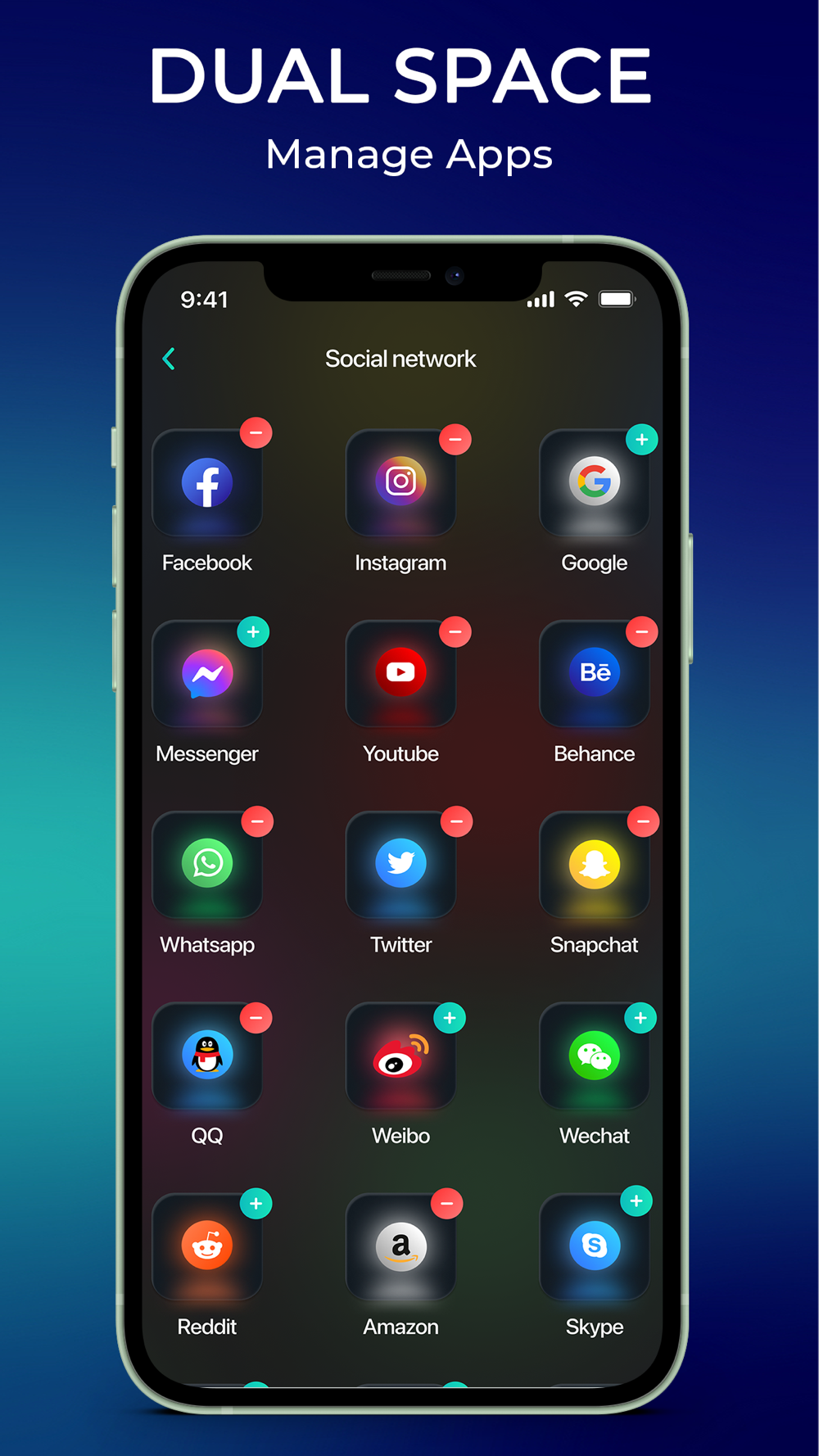 - Access multiple social network accounts at the same time, 2 accounts Facebook, Instagram, Whatsapp...