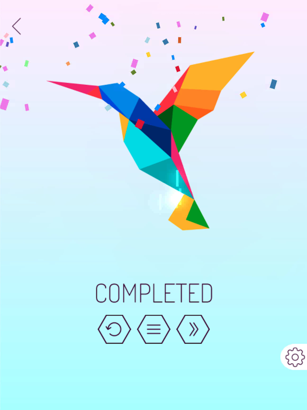 Playing Polygami is simple. Players need only drag a puzzle piece and place it in the correct position according to its shape or number. If a piece proves elusive, hints are available to help guide players. Once all the pieces are correctly assembled, players will be rewarded with a stunning low-poly art masterpiece.