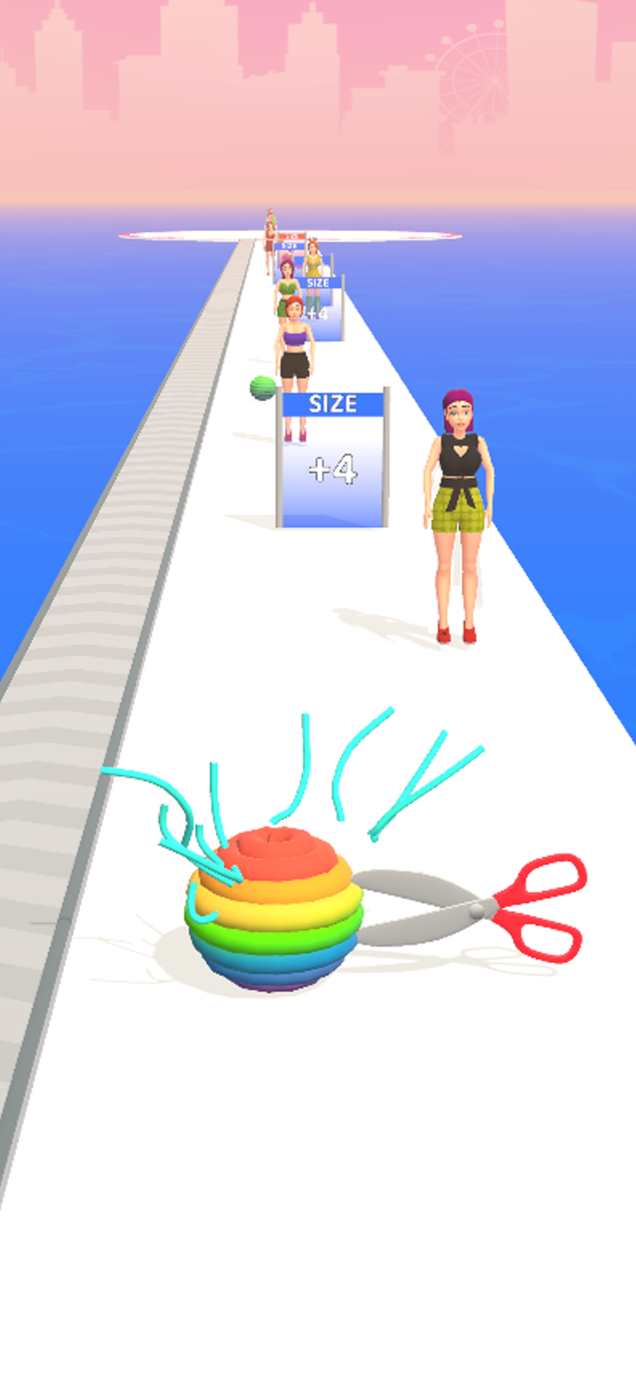 A Thread run is a runner game where you collect thread and make a bigger thread , help the people to finish their fashion dress and help them to do ramp walk at end. Don't get trapped in scissors or negative gates and try to grow your thread.