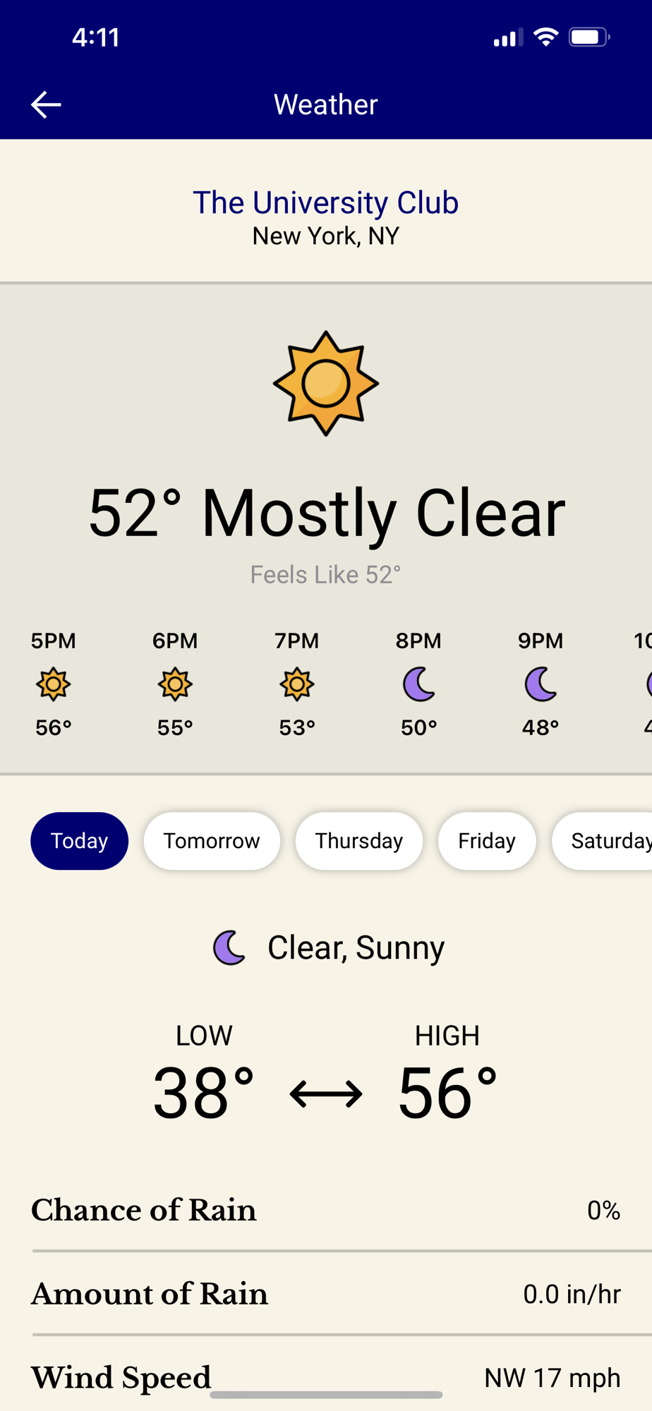 Note: Continued use of GPS running in the background can dramatically decrease battery life. The University Club of NY app will attempt to shutdown background GPS services when they are no longer needed.