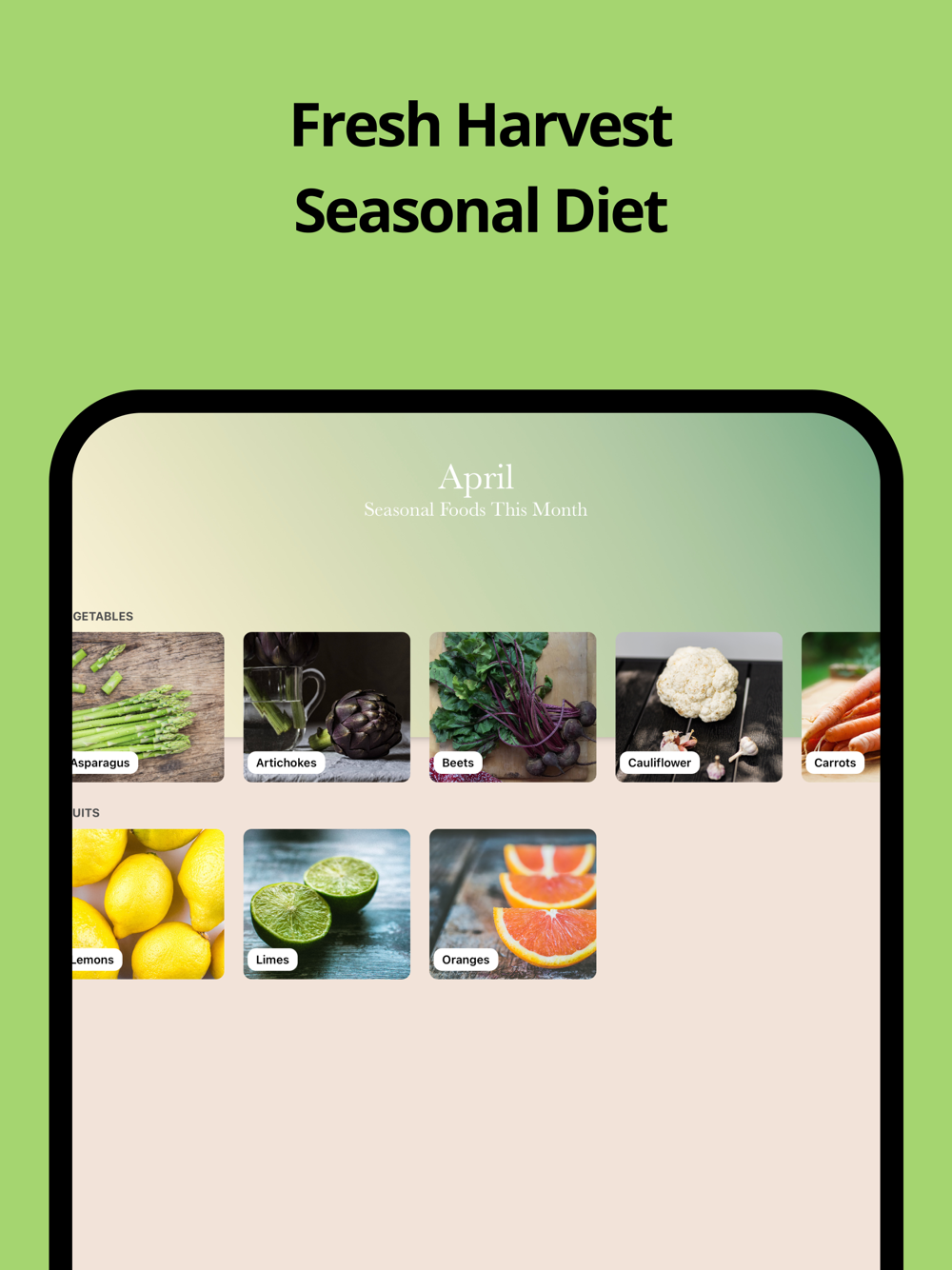 Seasonal Diet is a ultimate Seasonal Eating and Shopping List app is designed to help you eat healthy and save money by guiding you on what fruits and vegetables are in season and providing a built-in shopping list. By eating in-season produce, you can enjoy the freshest and most flavorful fruits and vegetables at the lowest prices.