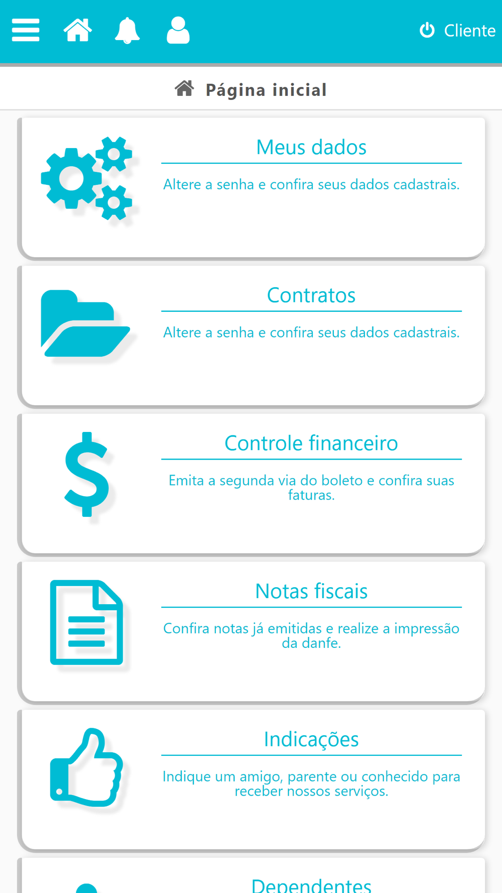 Com o aplicativo da área do cliente você poderá emitir seus boletos e recibos, receber notificações e avisos, abrir atendimentos e indicações, testar sua velocidade de conexão e muito mais.