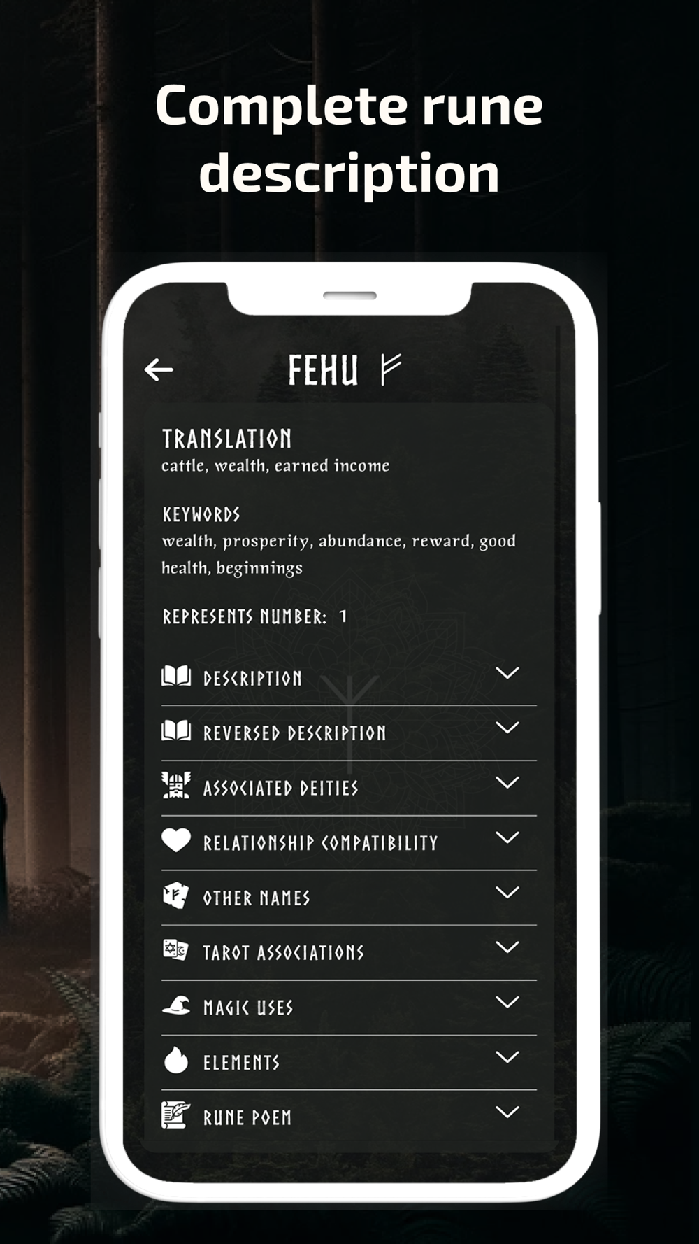 * Complete Rune Dictionary: Understand the upright and reversed meanings of each rune.