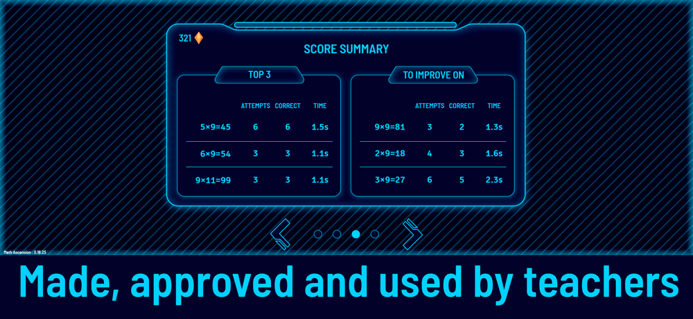 Math Ascension was made to combat math anxiety. The game builds up children's confidence and strengthens skills that are often lacking – multiplication and mental math.