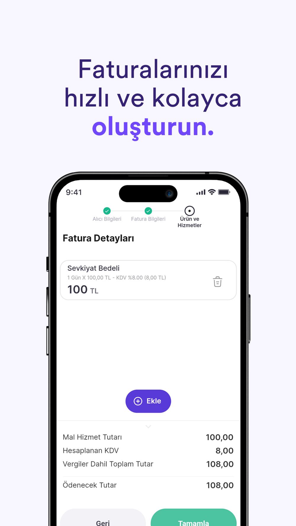 - Satış ve satınalma faturalarınızı kolayca oluşturun.