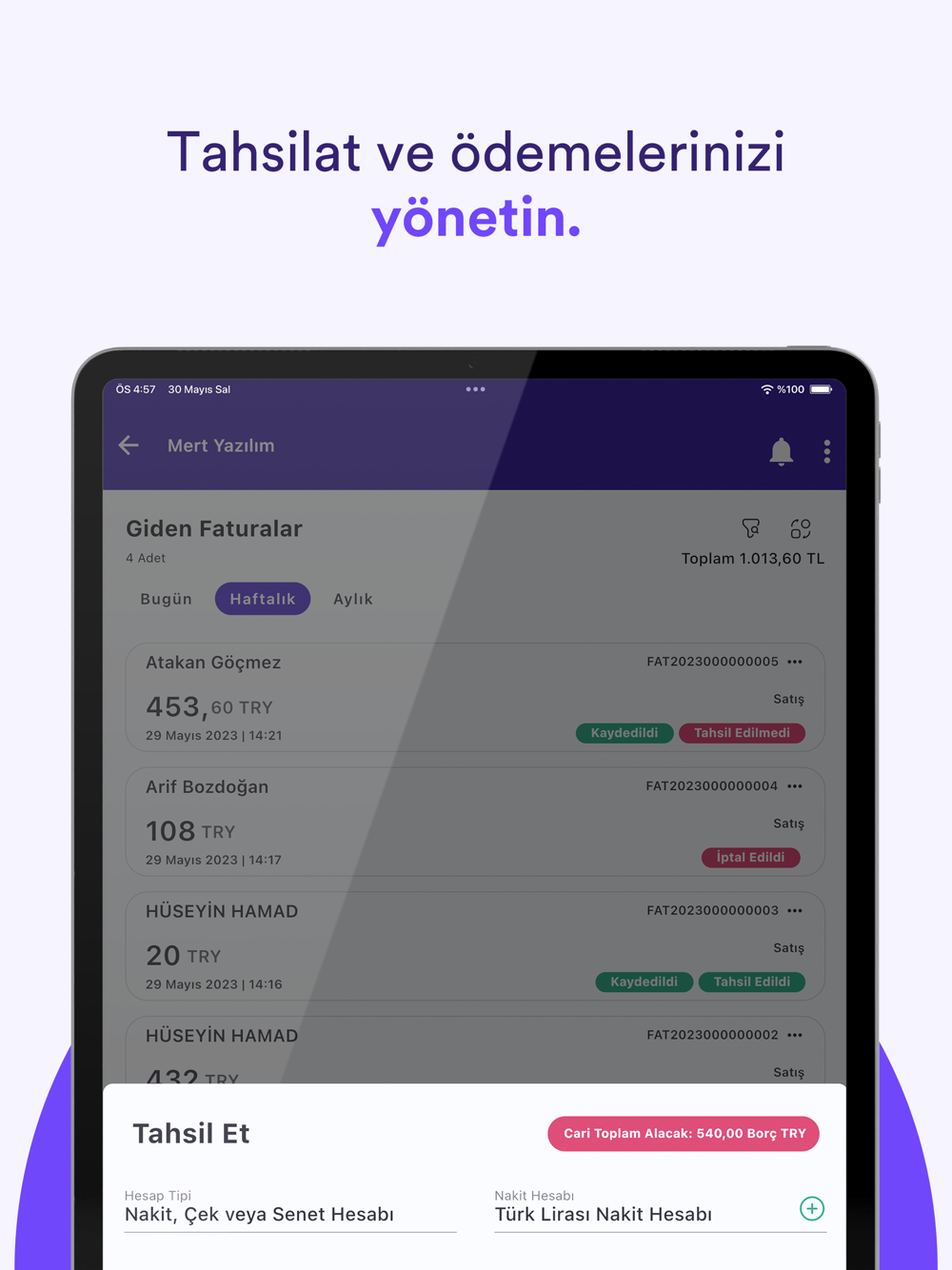 - Kolayca faturalarınızın tahsilatını yapabilirsiniz.