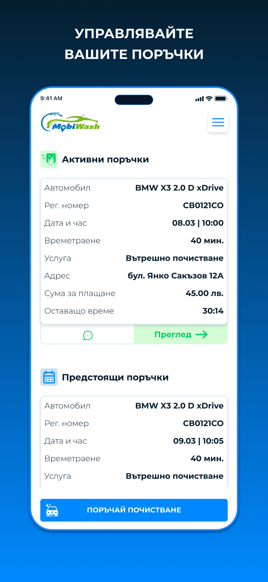 MobiWash е иновативното мобилно приложение позволяващо ви да поръчате измиване на вашия автомобил на желана от вас локация. Заявете измиване до адрес, изберете желани от вас дата и час, получавайки нотификация при започване и завършване на поръчката от екипа на Mobiwash. Приложението позволява добавяне на няколко автомобила под един профил, добавяне на кредитна карта за плащания, плащания в брой, следене и хронология на поръчките.