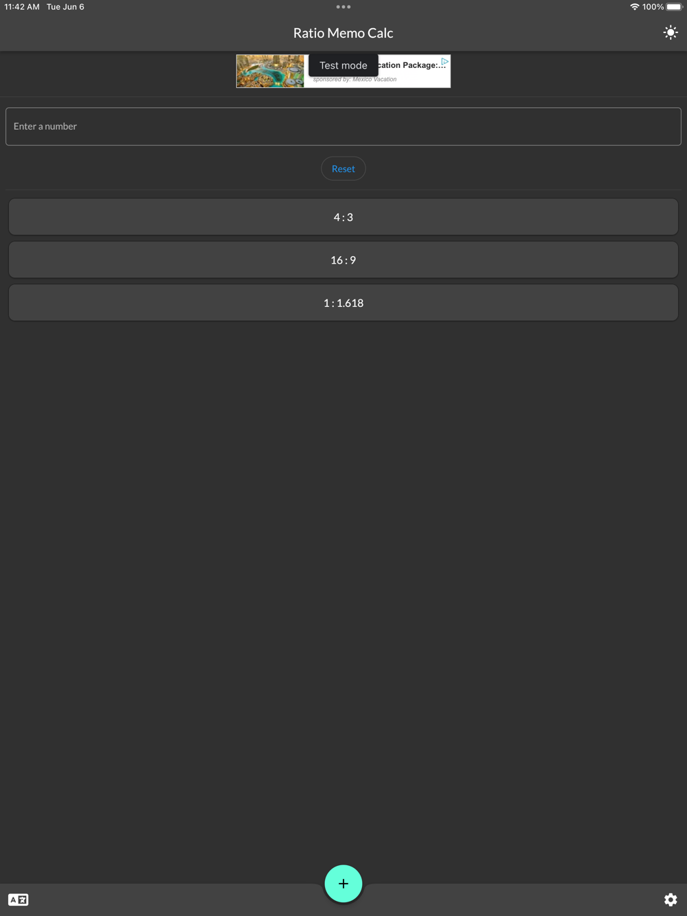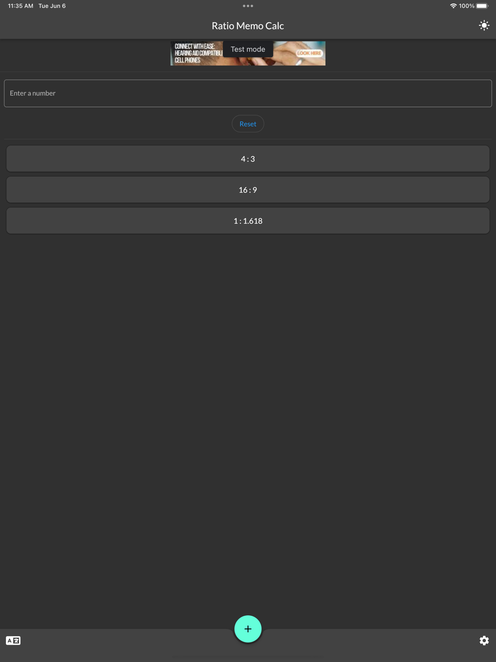 A calculator that enables you to save ratios that you commonly use in advance. Screen sizes, photo aspect ratios, smartphone aspect ratios, and the golden and silver ratios can all be pre-set.