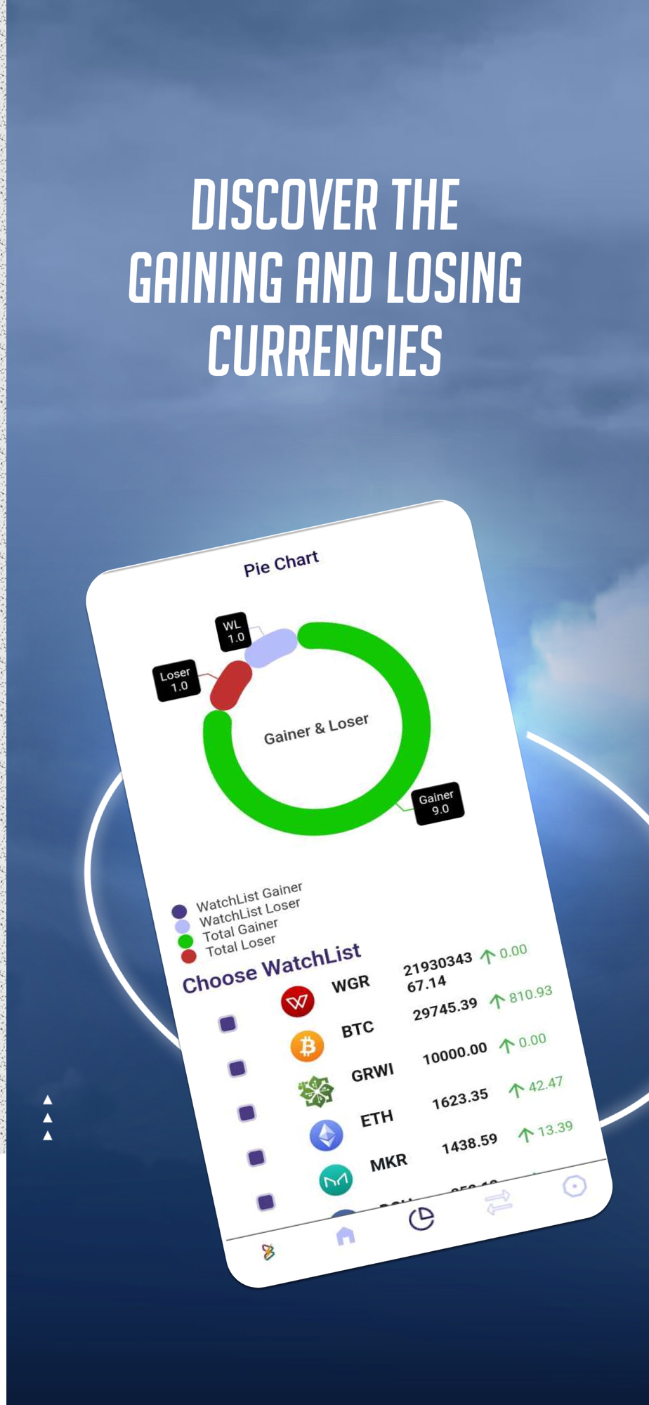 The app contains a cutting-edge dashboard with a pie chart that displays the currency market value changes in real time, the gaining and losing tokens of the market. Additionally, you may create your own watchlist, view real-time prices, and choose from a vast variety of various coins.