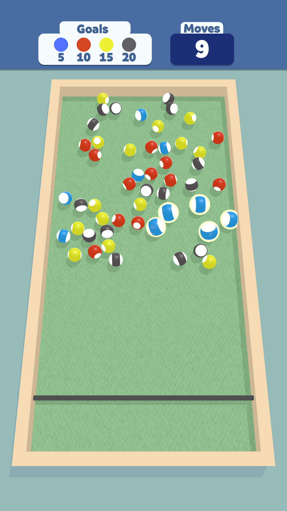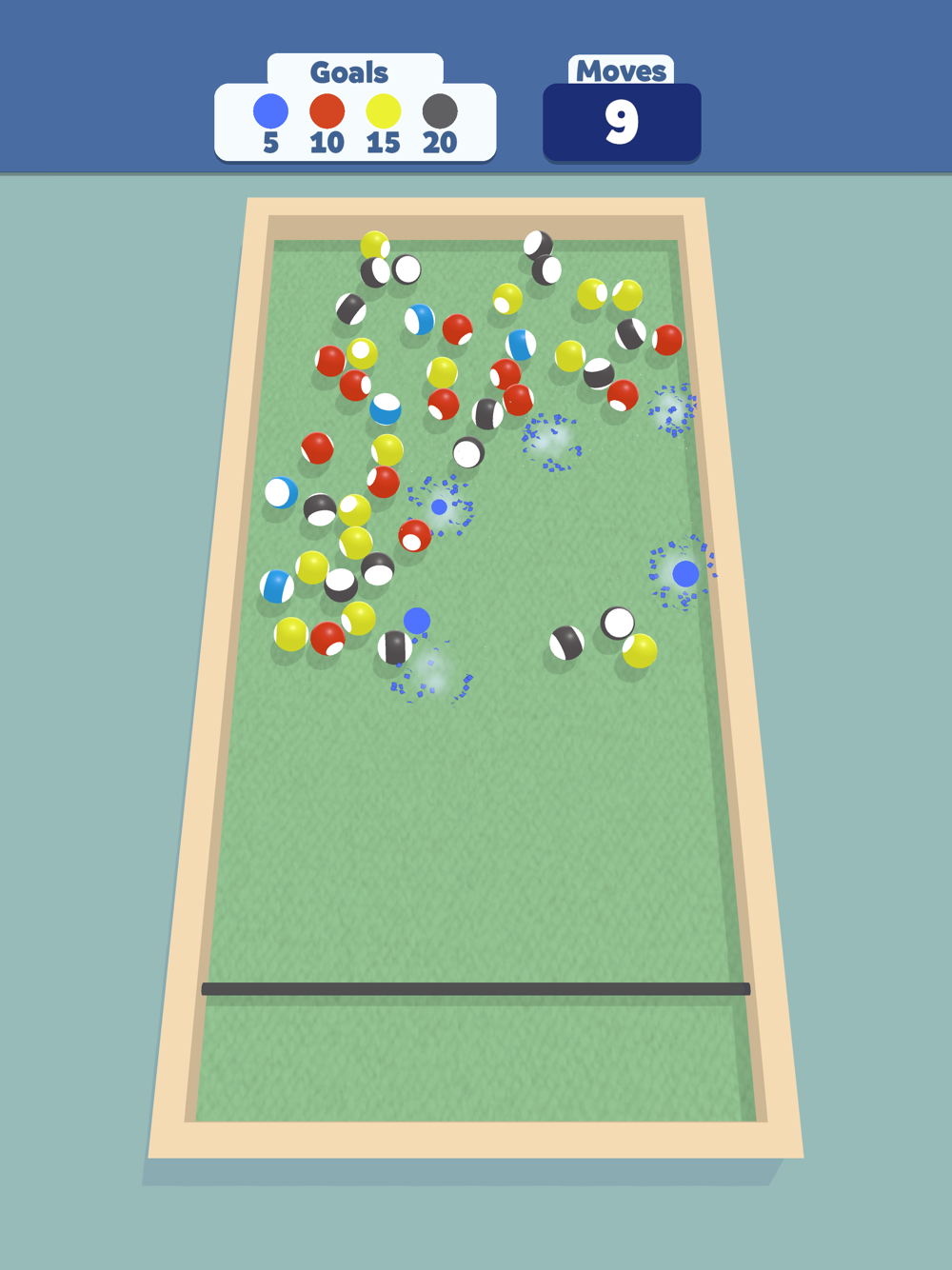 Throw your ball at other balls of the same color and collect them all to achieve your many objectives!