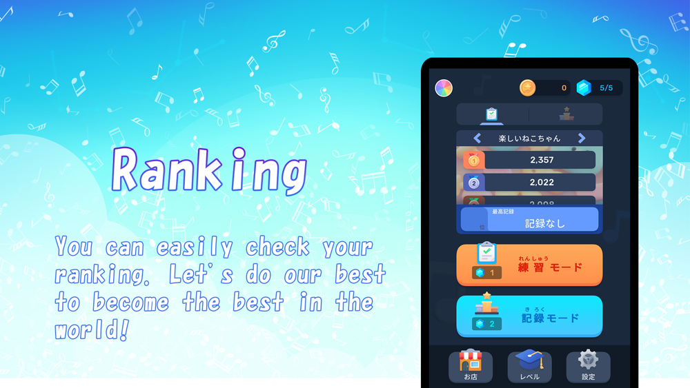 In practice mode, you can check how many points you have scored in the world. The ranking is reset once a month, so you can challenge with a new feeling every month.
