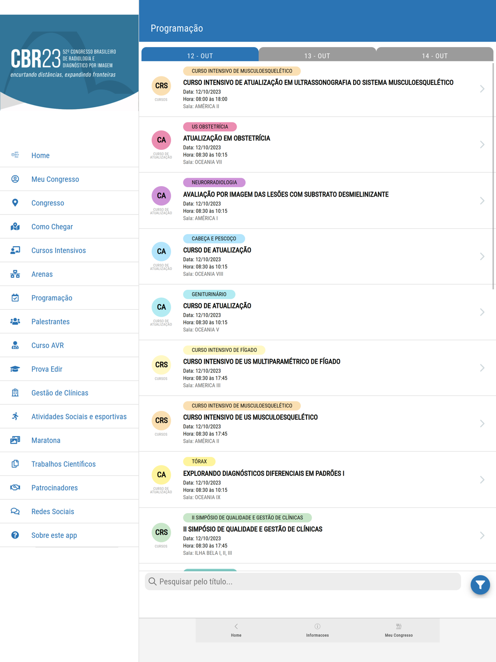 O evento, que marca o regresso do CBR à cidade maravilhosa após a pandemia de Covid-19, contará com uma programação imperdível e inédita ao reunir diversas sociedades internacionais de Radiologia. Para o público que nos aguarda, além das atividades científicas que evolvem o que há de mais atual na Radiologia e Diagnóstico por Imagem, a edição de 2023 contará com novidades relevantes para a especialidade médica: quase dez Cursos Intensivos em diferentes áreas (incluindo vários de Ultrassonografia, um dos carros-chefes do nosso evento), quatro Arenas com atividades multidisciplinares (Inovação, Cultura e Humanidades, Radiologistas do Futuro e Ultrassonográfica), a nossa tradicional Maratona Nacional do CBR em um formato especial, além de amplos e modernos espaços e área de interação, networking e exposição técnica.