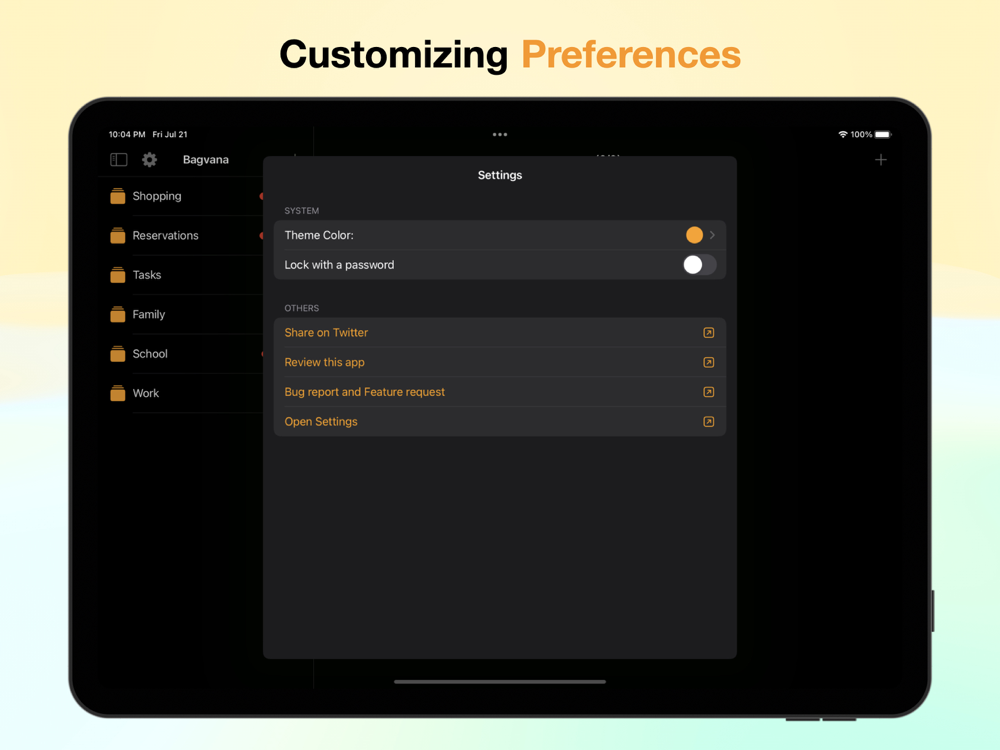 You can lock the app with a password, ensuring the safety of your data.
