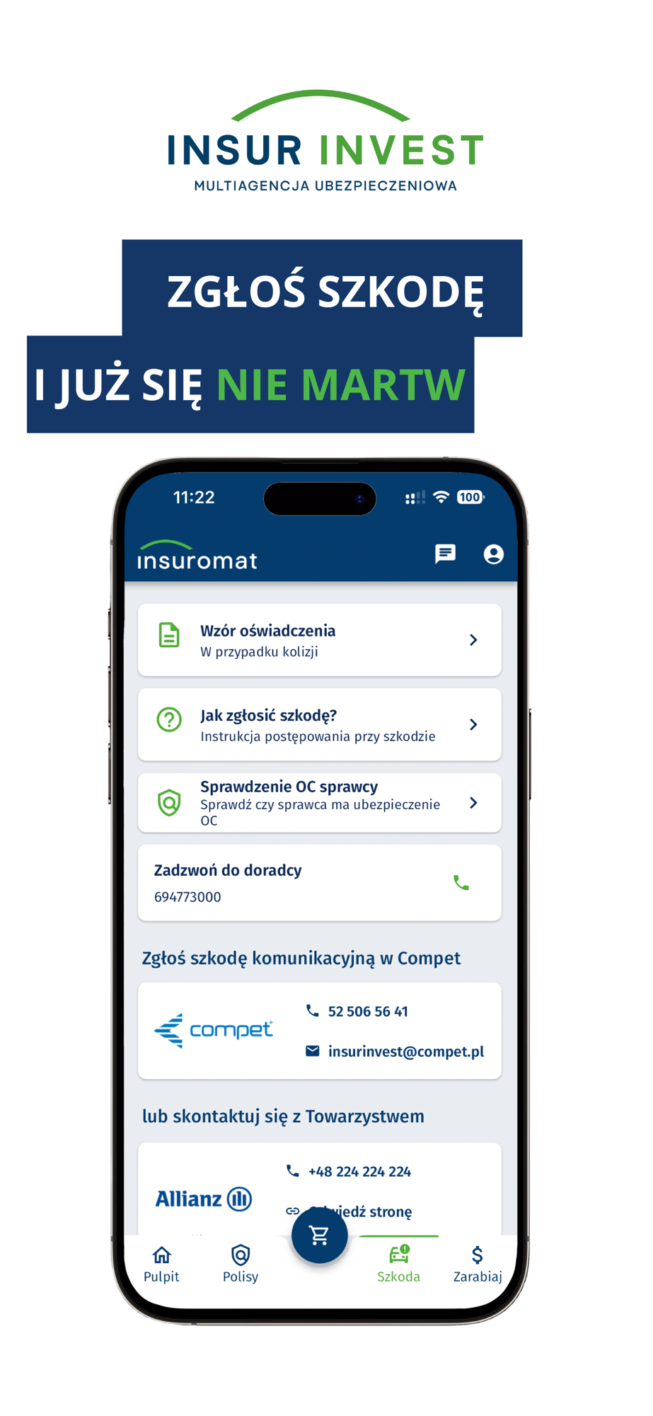 W Insuromacie przechowasz wszystkie swoje polisy i ułatwisz sobie kontakt z Twoim Agentem Ubezpieczeniowym. Dzięki aplikacji możesz napisać do swojego Doradcy na czacie lub umówić się z nim na spotkanie on-line. Nie będziesz rozmawiać z chatbotem – po drugiej stronie będzie doświadczony Agent Ubezpieczeniowy.