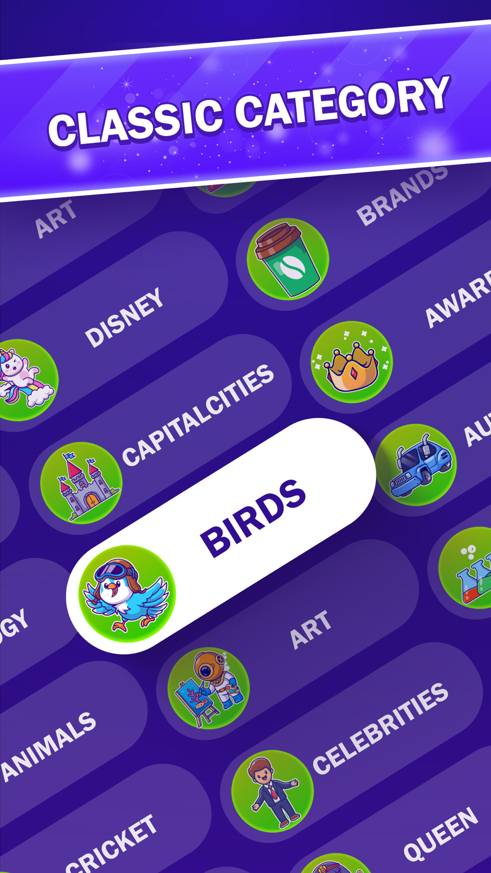 Play with over 40+ categories including - general knowledge, science, animals, food, sports, music, movies, TV shows, and more!