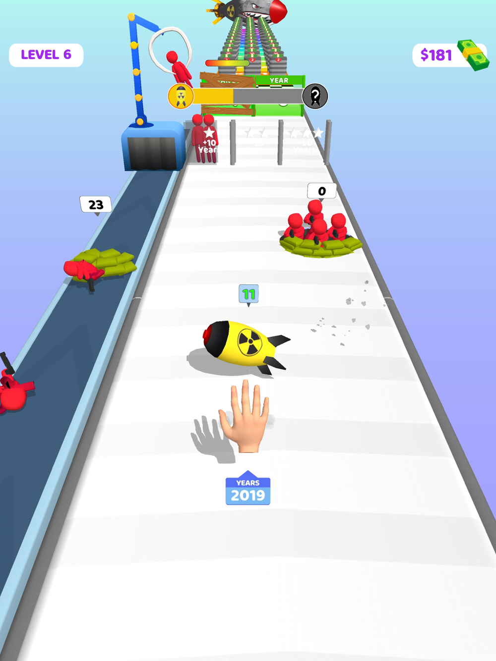 Use your bombs to blow up enemies to increase your year rate! As your year rate increase, your bomb will evolve to damage higher! There are enemies try to damage you, you should avoid them!
