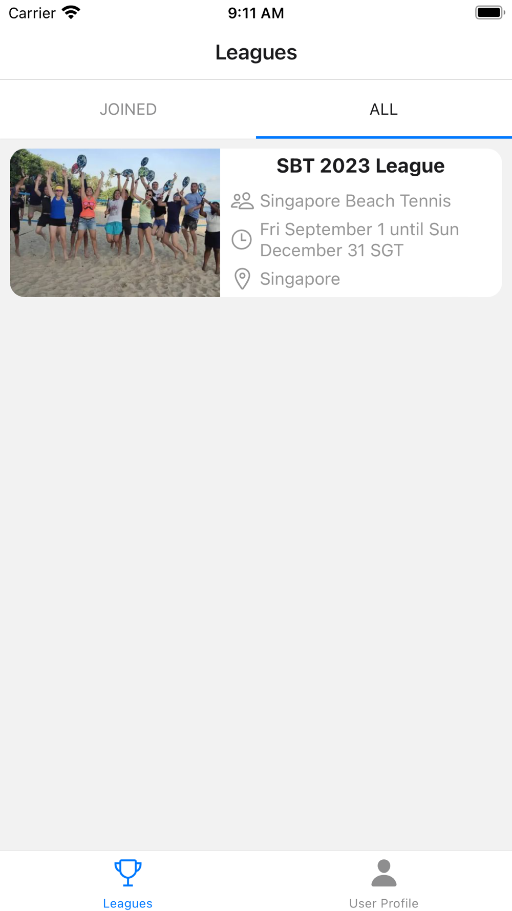 * View league rankings. The ranking is based on win percentage, total matches played and joined date