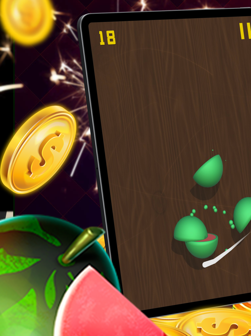 How about chopping juicy fruit? It's simple and a lot of fun! Swipe on fruits, score points but avoid bombs. Try to set new records.