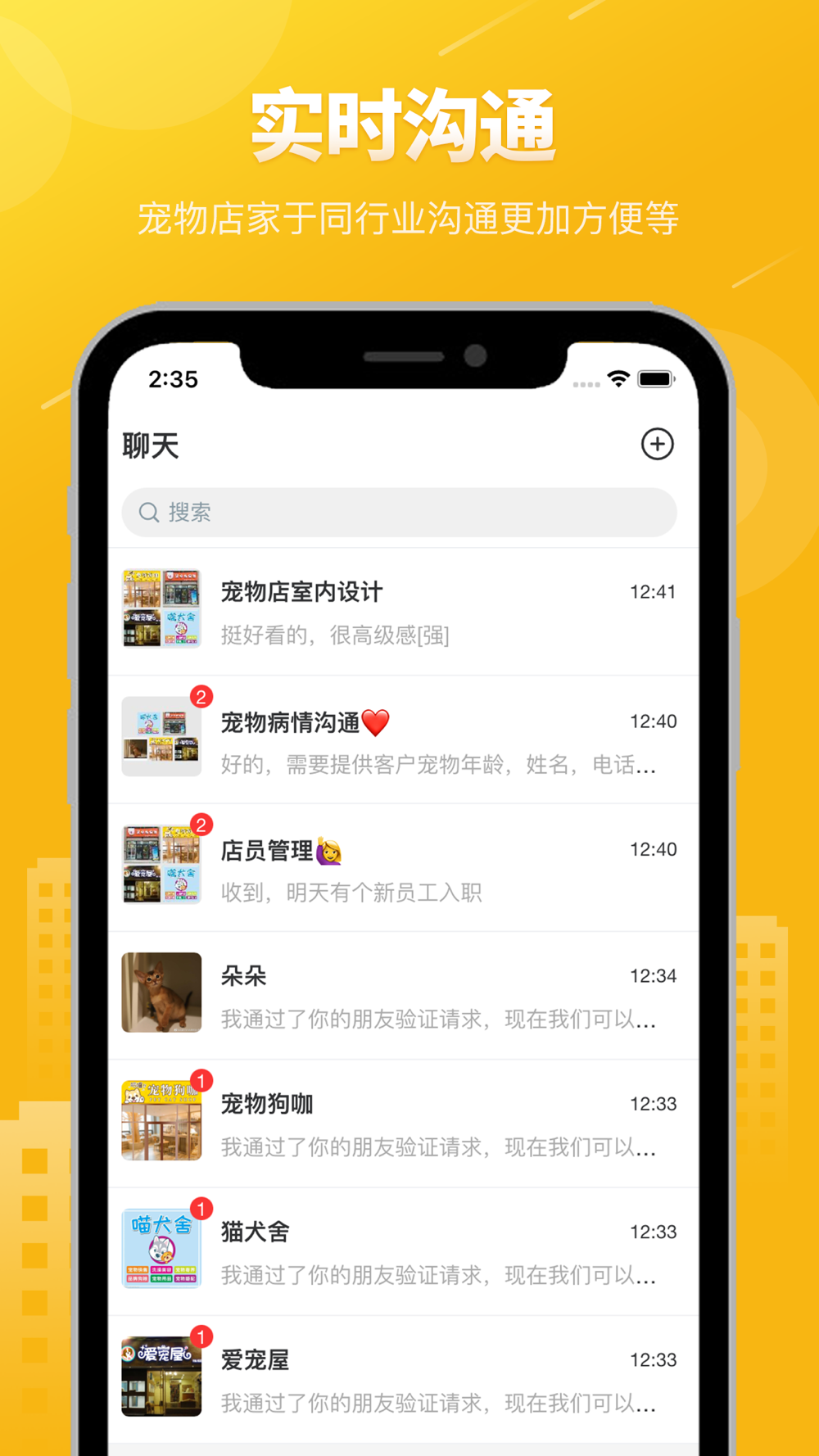 覆盖全国99%的地级市宠物店,打通城市之间地合作边界,宠物店家好友沟通更方便、更高效、App内有多种沟通方式,也可以直接打电话、跨城市,跨区域开展合作。