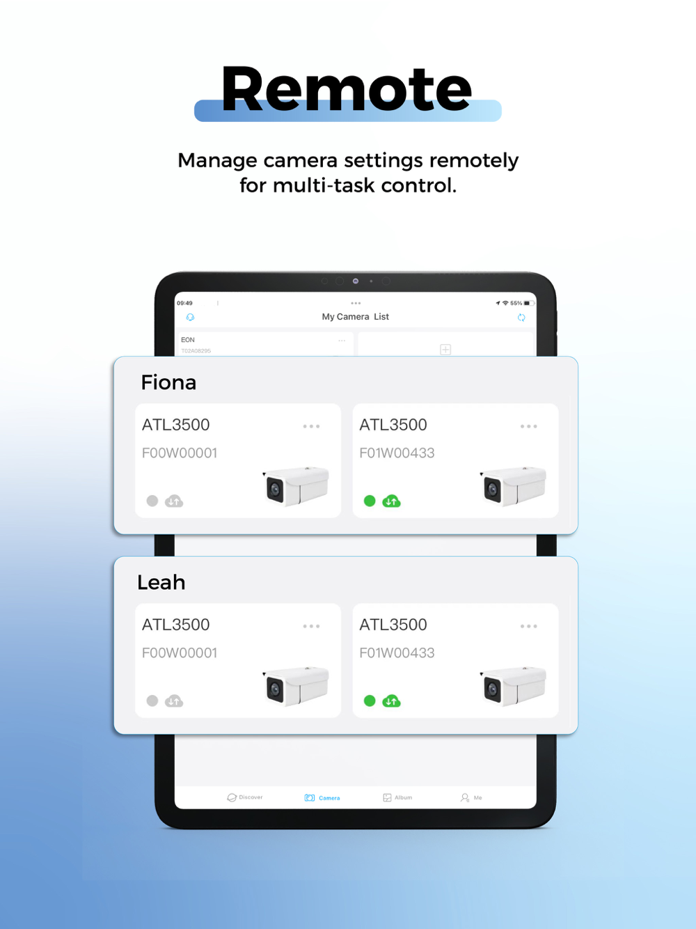 Remote Access: Your world is mobile, and so is your camera control. With remote access from the ATLI Cam+, monitor progress, adjest settings, or download footages wherever you are – all from your mobile device.