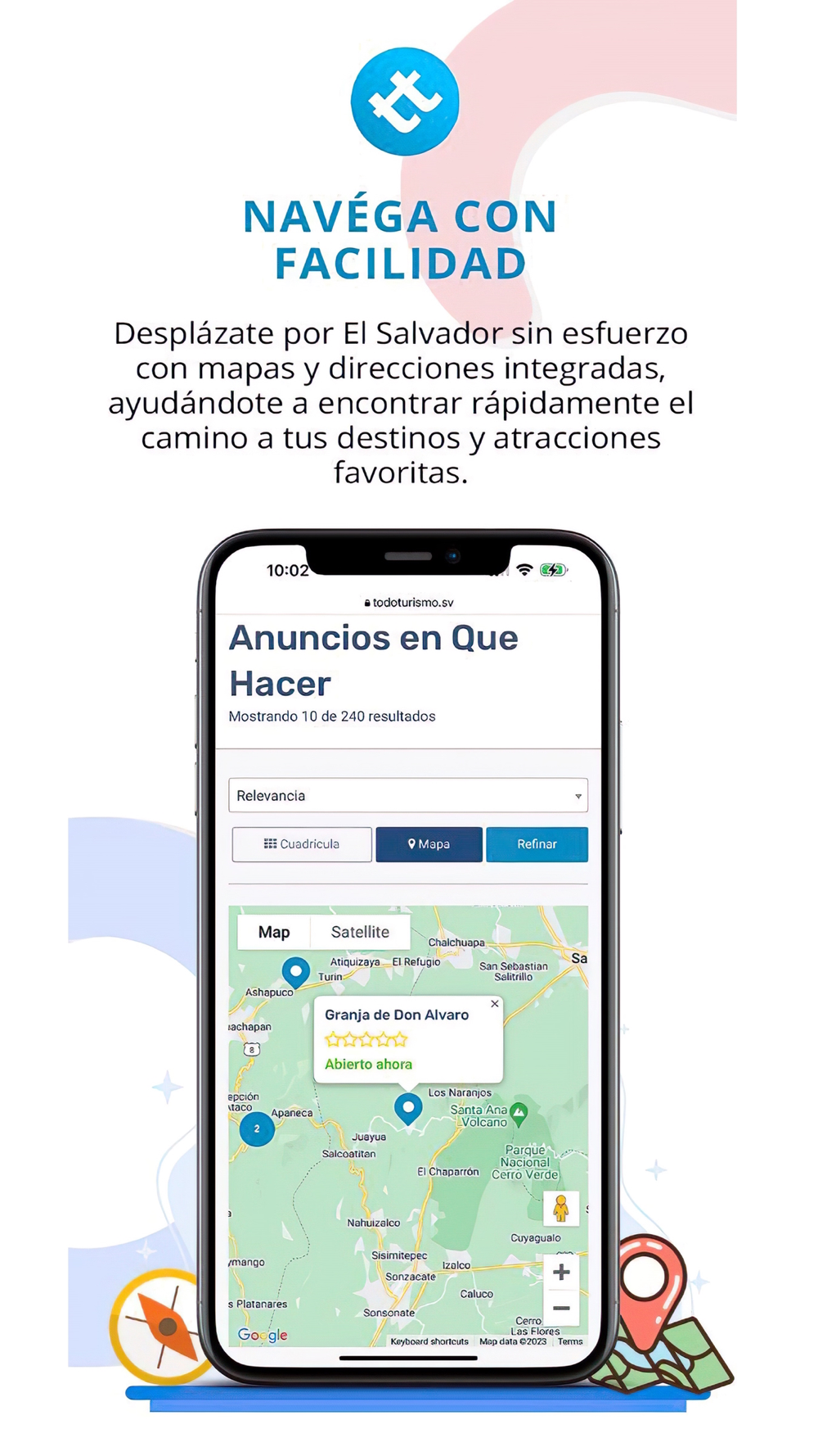 5. Mapas y direcciones: Navega fácilmente por El Salvador con mapas y direcciones integrados en la aplicación. Encuentra rápidamente cómo llegar a tus destinos y atracciones favoritas. La aplicación recomienda lugares y servicios cerca de ti.