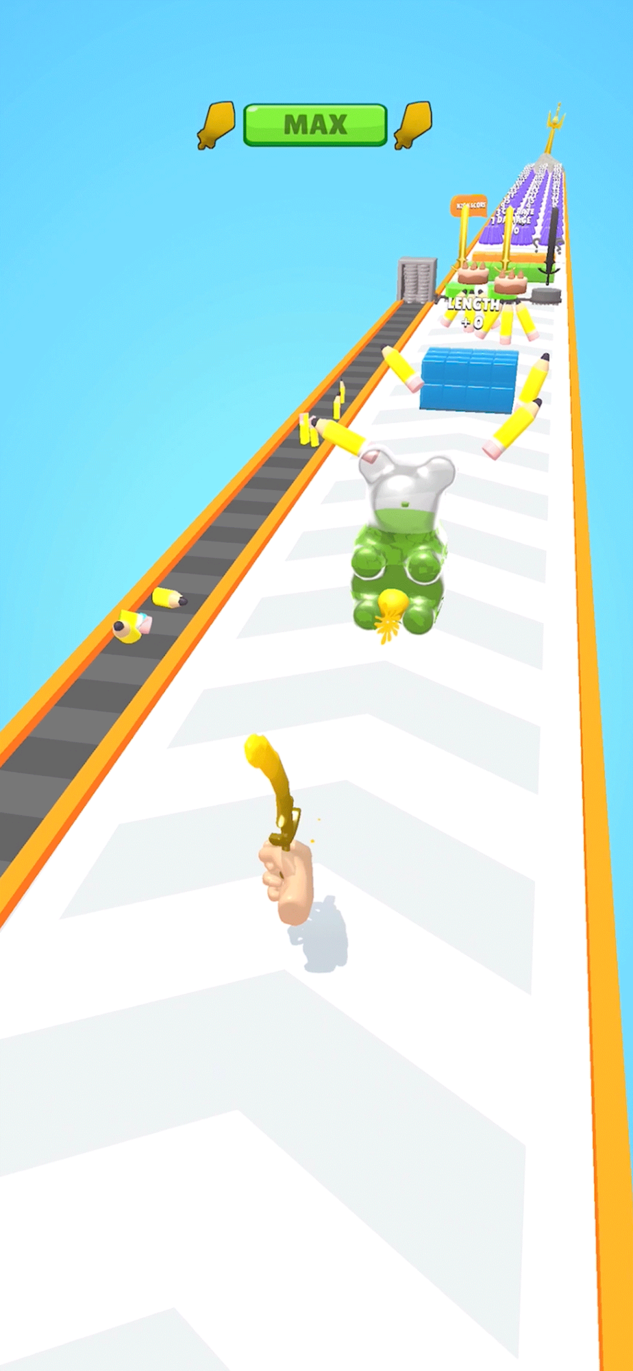 - Get past the obstacles and reach the big jelly at the end