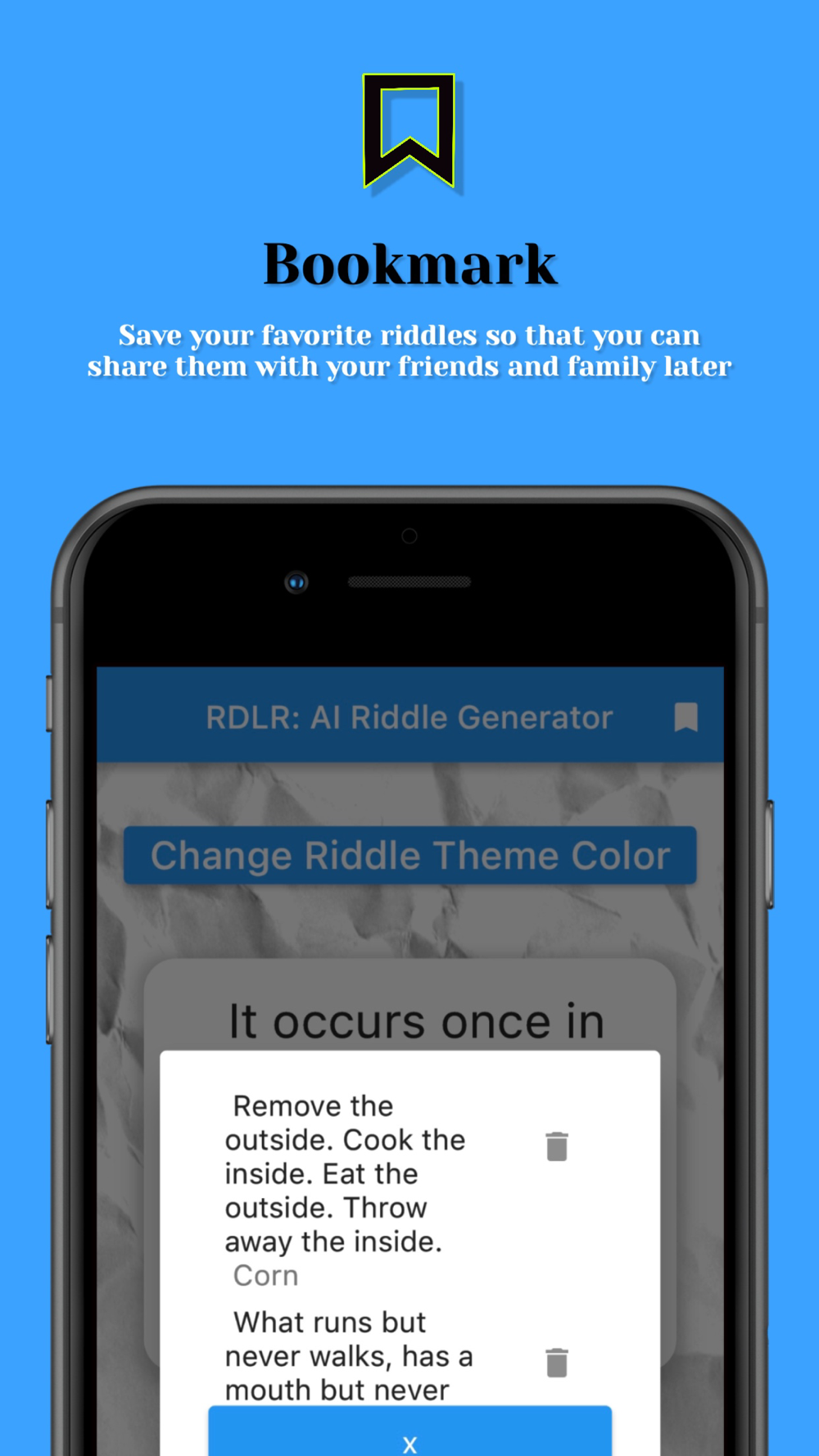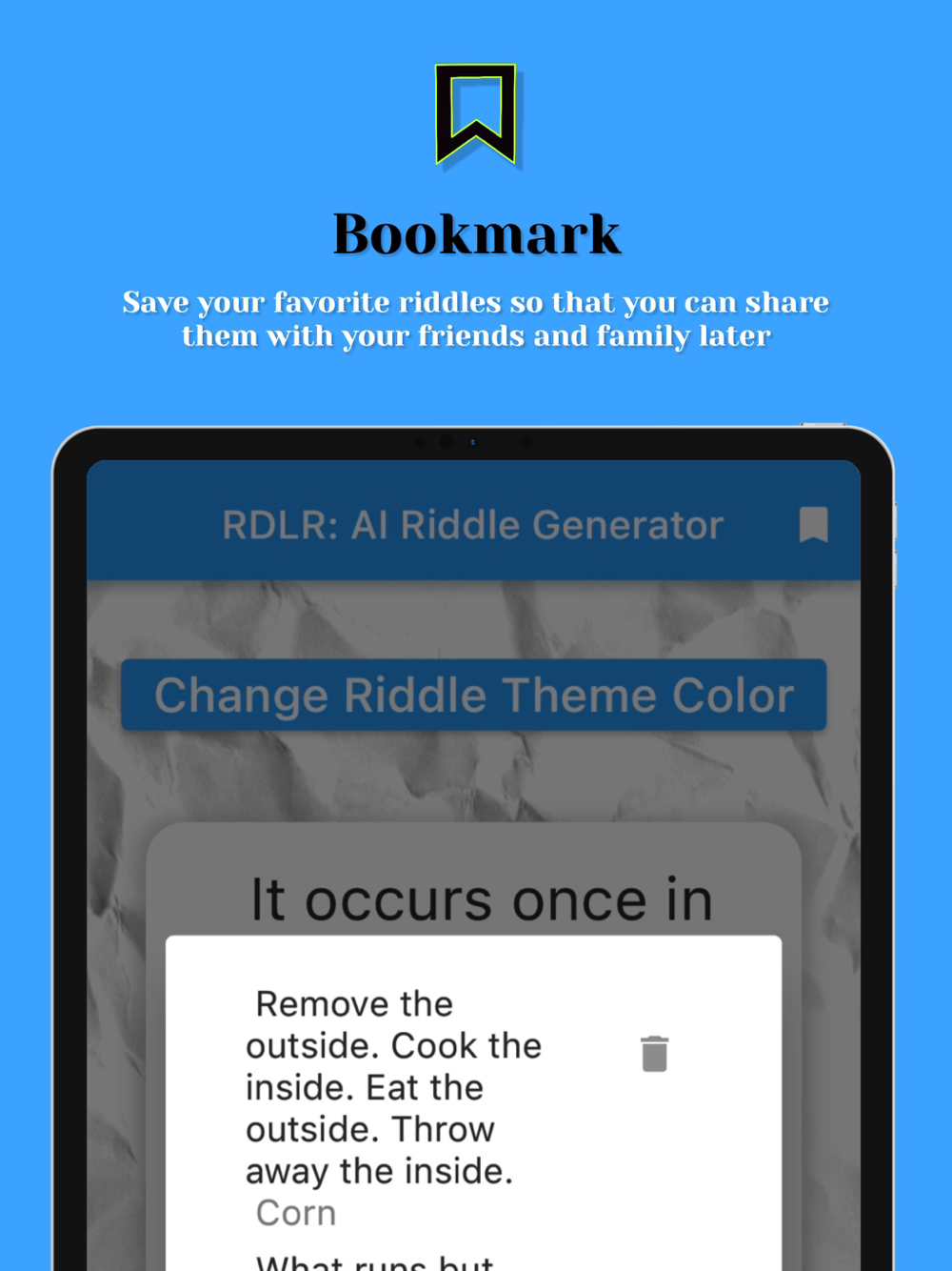 Dive Deep into the World of Riddles: Whether you're a riddle enthusiast, or just looking for a fun way to pass the time, RDLR is your go-to app. Join our growing community of puzzle lovers and dive deep into the intriguing world of riddles, powered by the latest in AI technology.