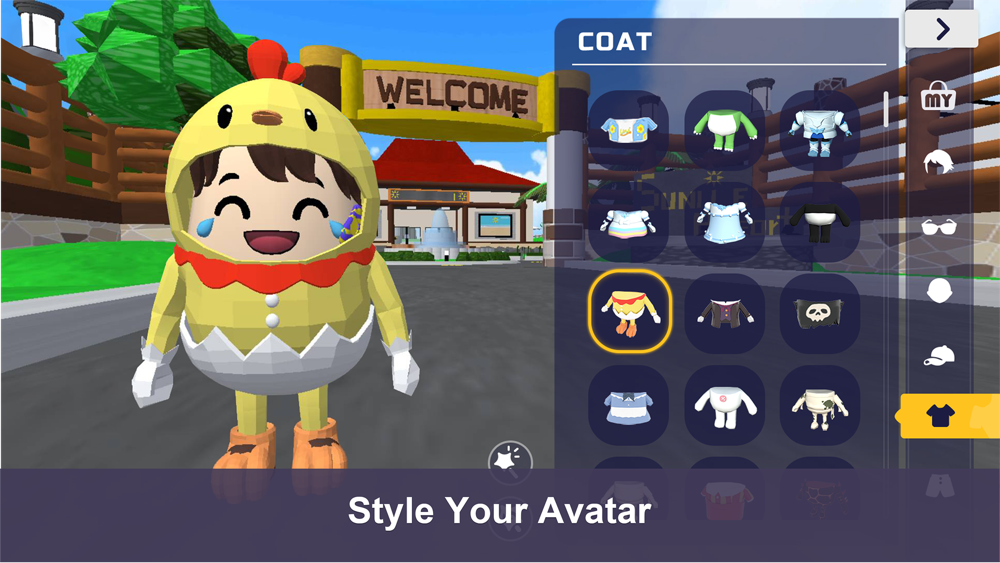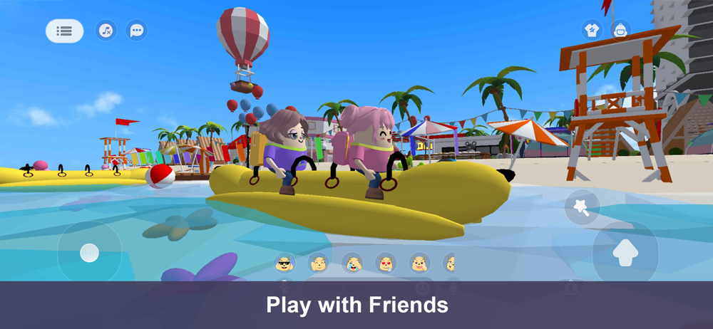 You can also invite your friends to play in various game worlds. Run obstacles in a mysterious world, trampoline in the garden, dance on the dance floor, sleep on clouds, do whatever you want!