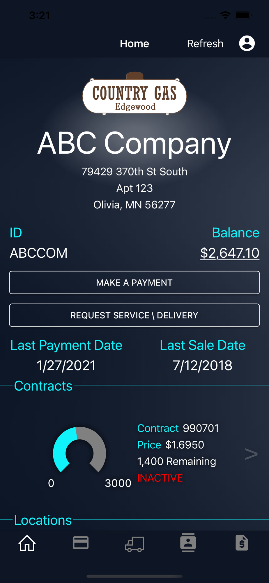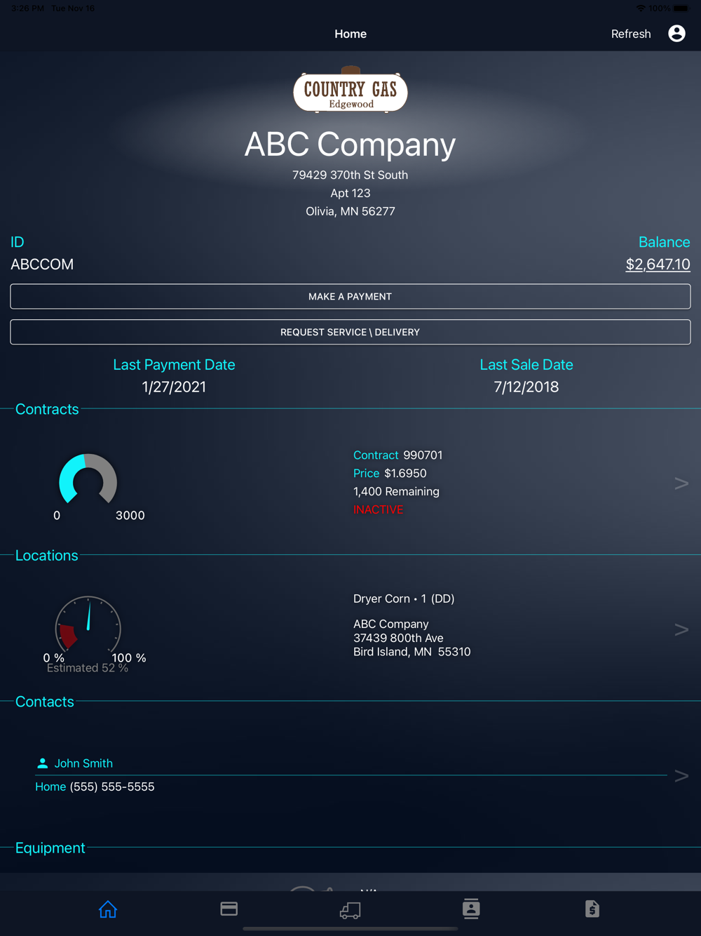 Information at your fingertips! This app gives you direct access to your account balance, location and contract information. It also gives you the ability to store and process payment and request service work and deliveries directly through the app.
