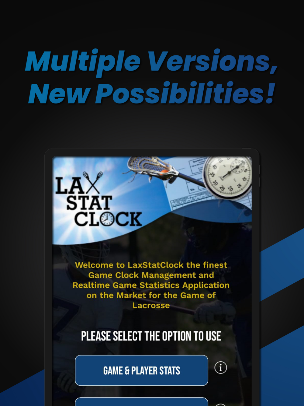 Download now and experience the future of Lacrosse Game Clock Management and Statistical tracking.