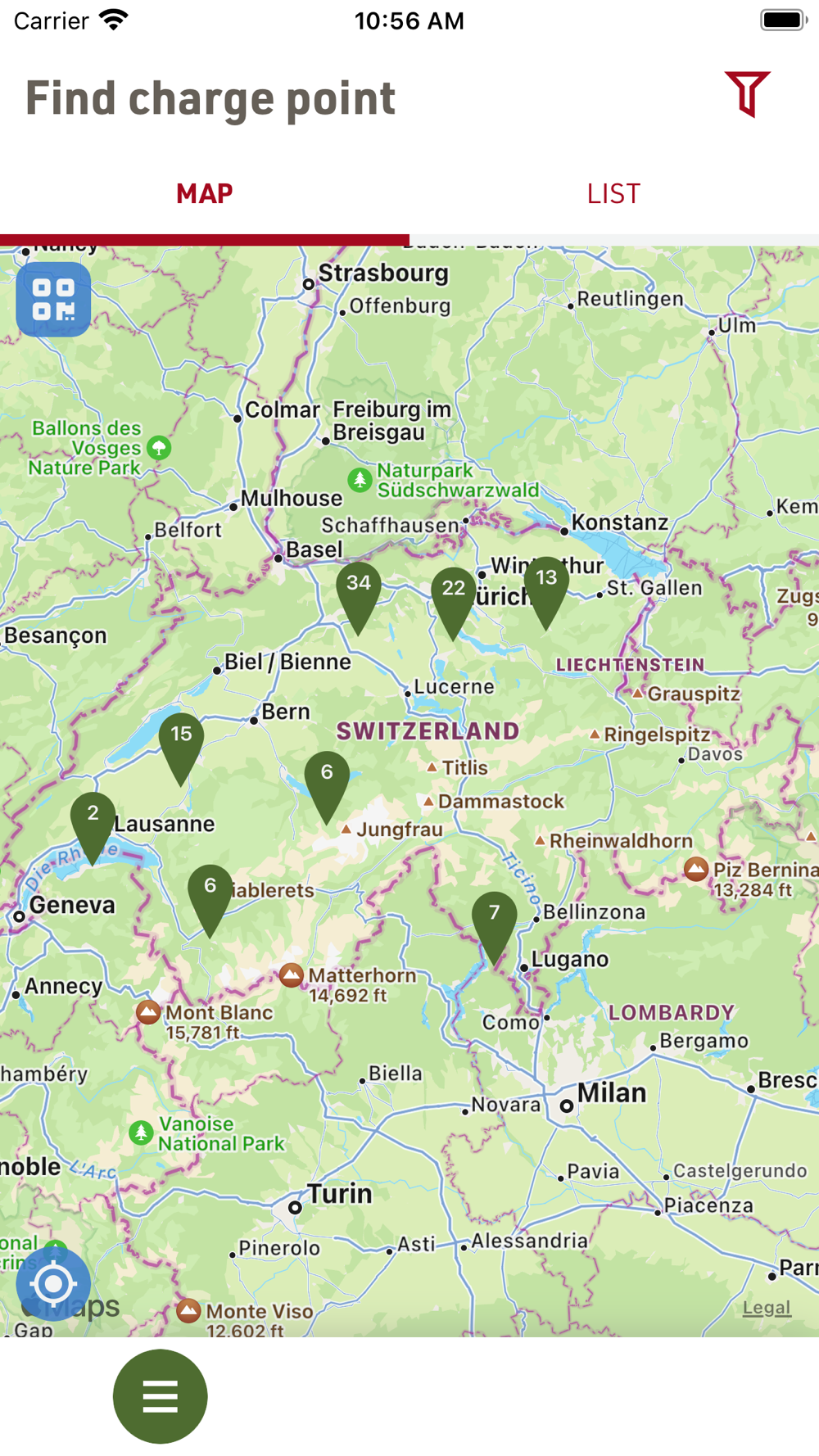 - Map view of all available charging stations to plan your route.