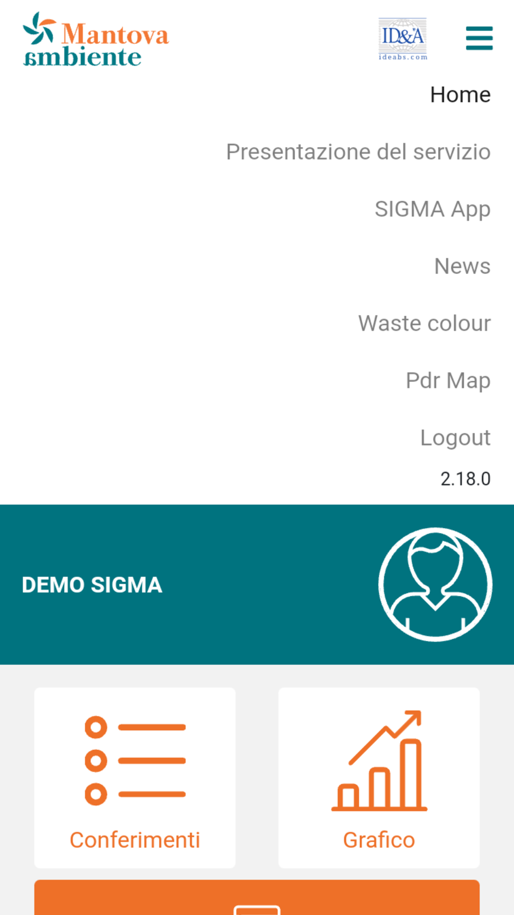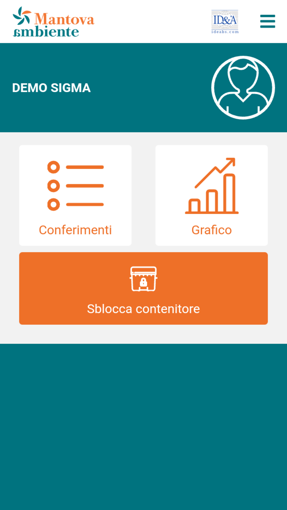 - Apertura contenitori: l’utente può conferire i rifiuti identificandosi con la app mobile SIGMA.