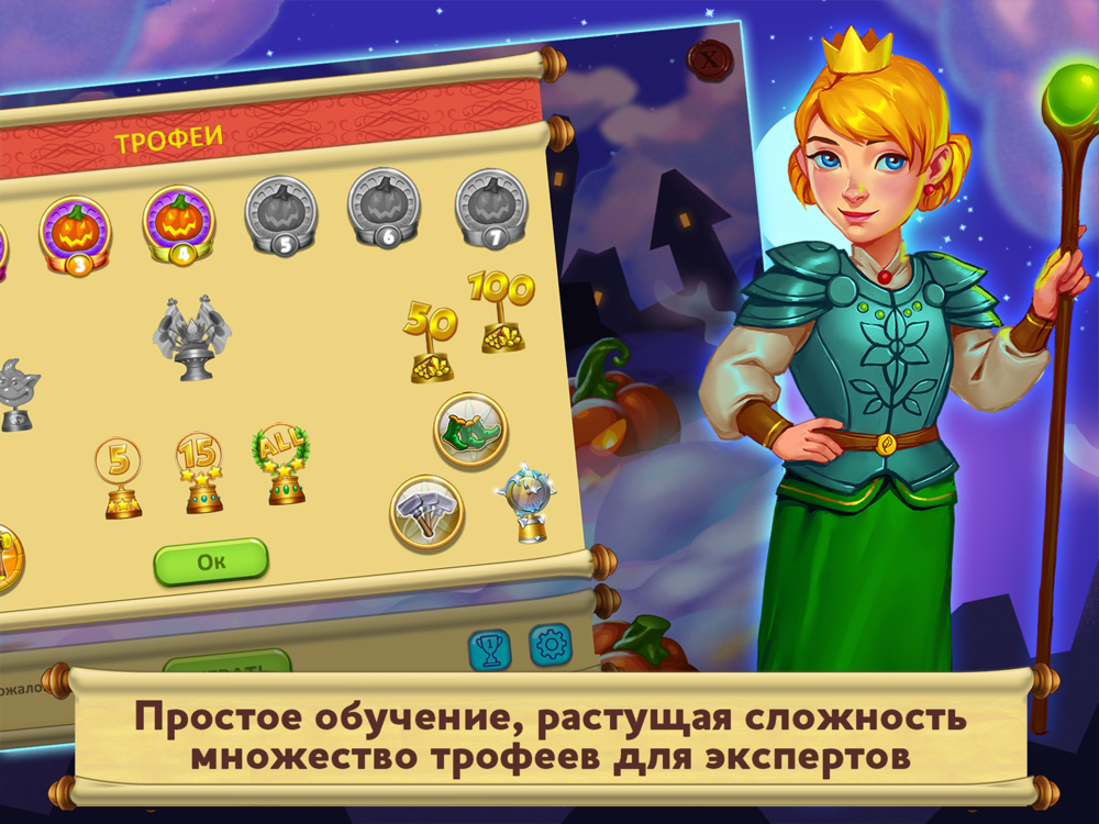 Vampires, werewolves and zombies need your help! Jump in with the princess and her friends to a whole new world of adventure! Mysterious, mystical beings and unexplainable events await in the thrilling causal fantasy strategy game Gnomes Garden: Halloween. Tons of different objectives, more than 40 levels, an intriguing plot, simple and engaging gameplay, and a unique new universe are all yours to explore right now. Grow jack-o'-lanterns, scare off other-worldly spirits, and manage resources and construction projects. Simple gameplay and a clear tutorial help you dive right into the action. And if things get too tough, don't forget about the princess' powerful magic!