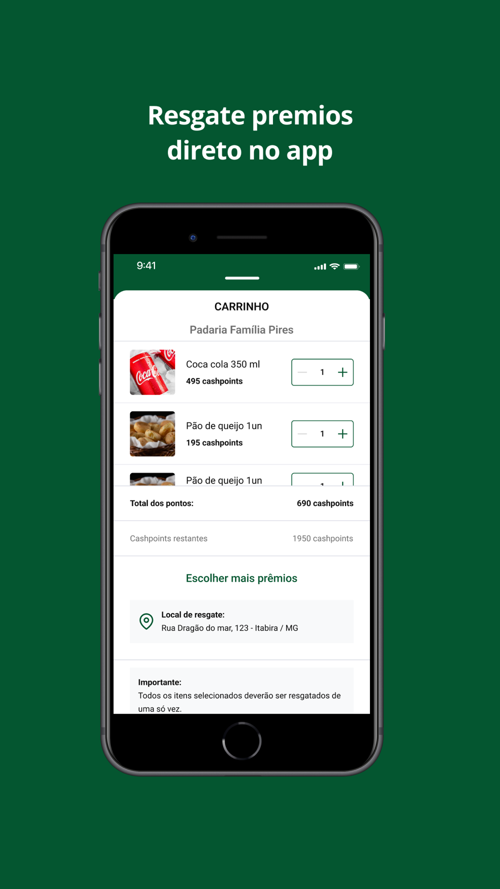 Resgate direto pelo app de forma fácil e rápida. Escolha o Posto ou Loja em que deseja resgatar, selecione o prêmio, a quantidade e emita o voucher. Depois é só apresentá-lo para retirar o prêmio.