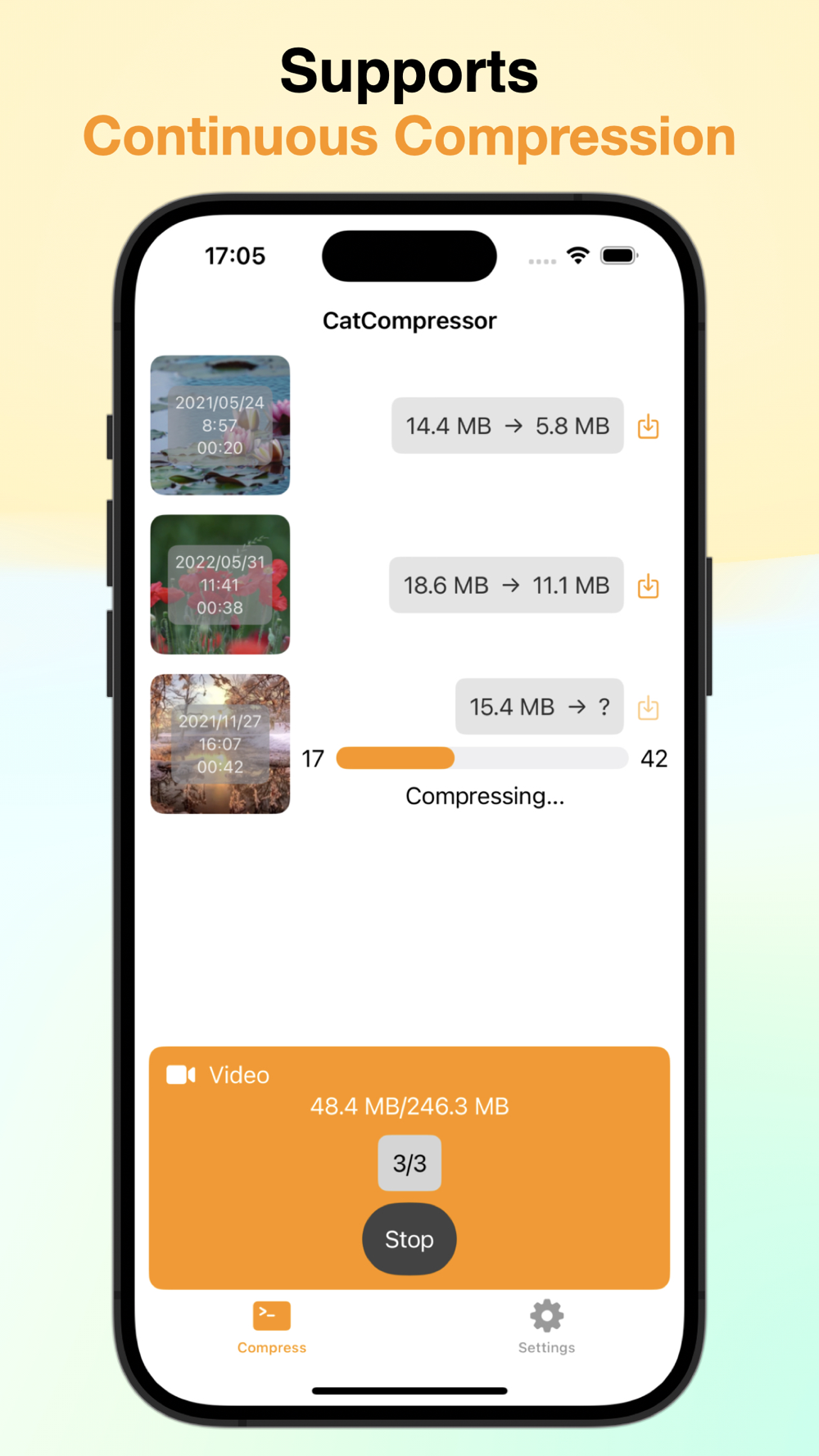 This app allows you to compress videos with your preferred settings. You can compress multiple videos at once.