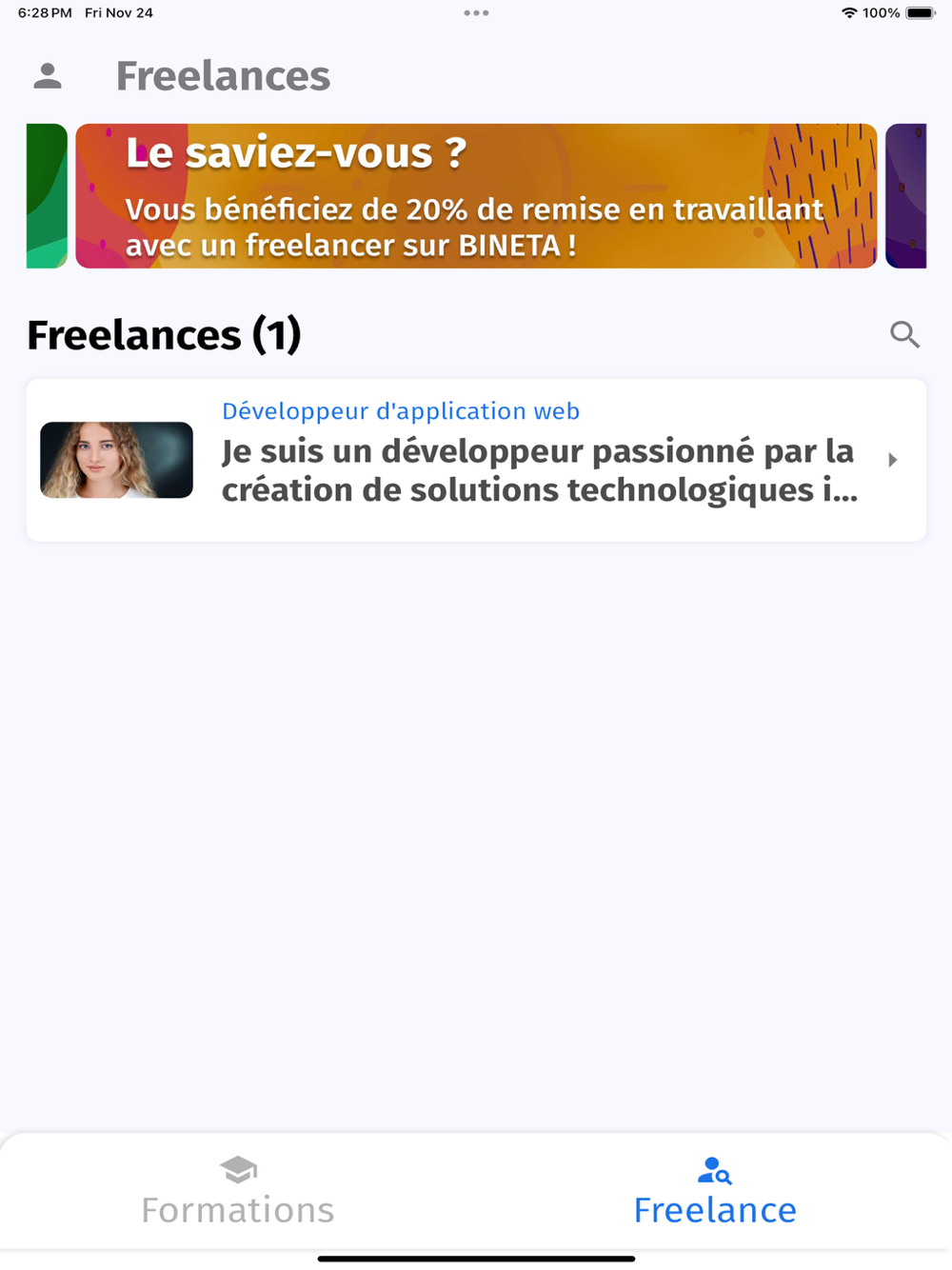 BINETA est une application de mise en relation créée dans l'optique de faciliter la recherche de formations pratiques et de ressources humaines pour l'accomplissement d'une tâche.