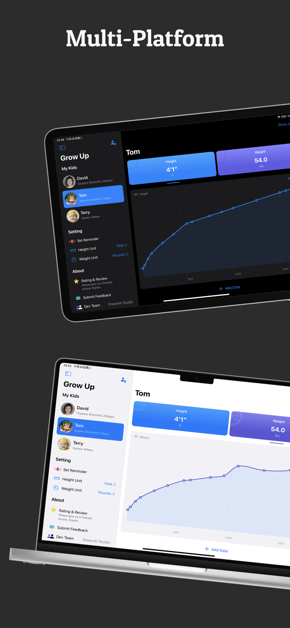 GrowUp is the perfect companion for parents who want to monitor and track their child's growth and health journey with ease. Whether you're keeping an eye on their height, weight, or overall development, GrowUp has got you covered.