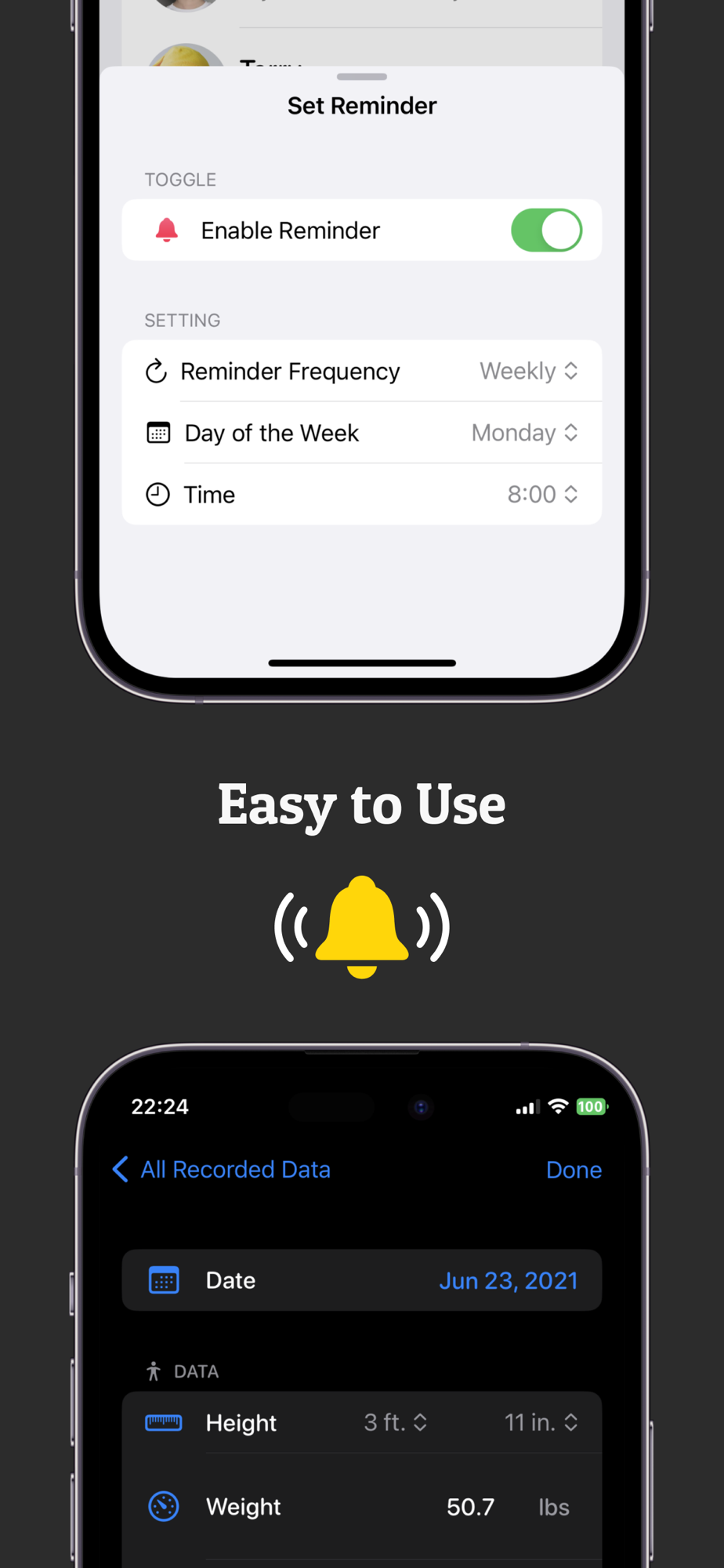 Our app creates easy-to-read charts and graphs to help you visualize your child's growth over time.