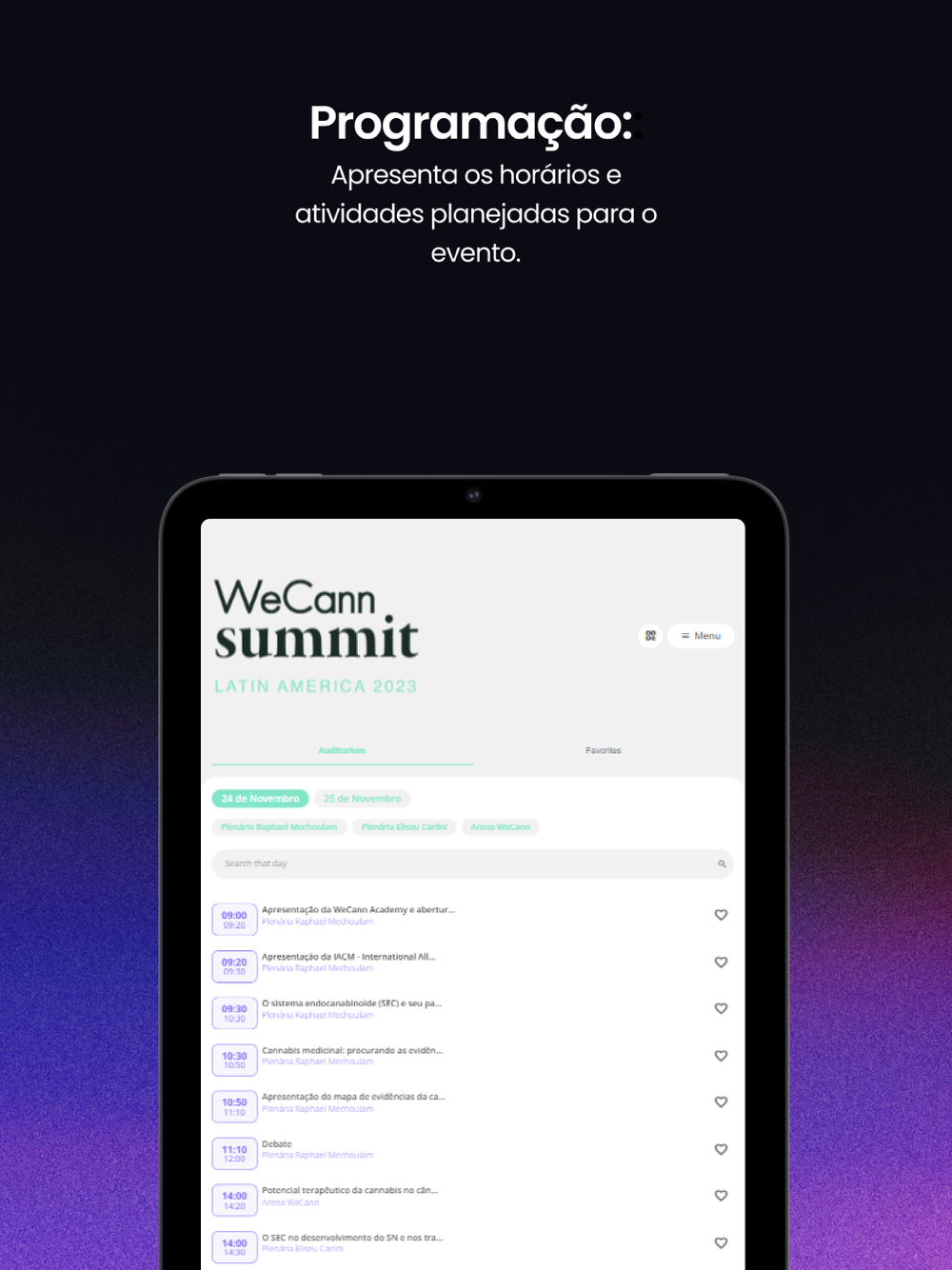 - Ver a programação do evento e favoritar